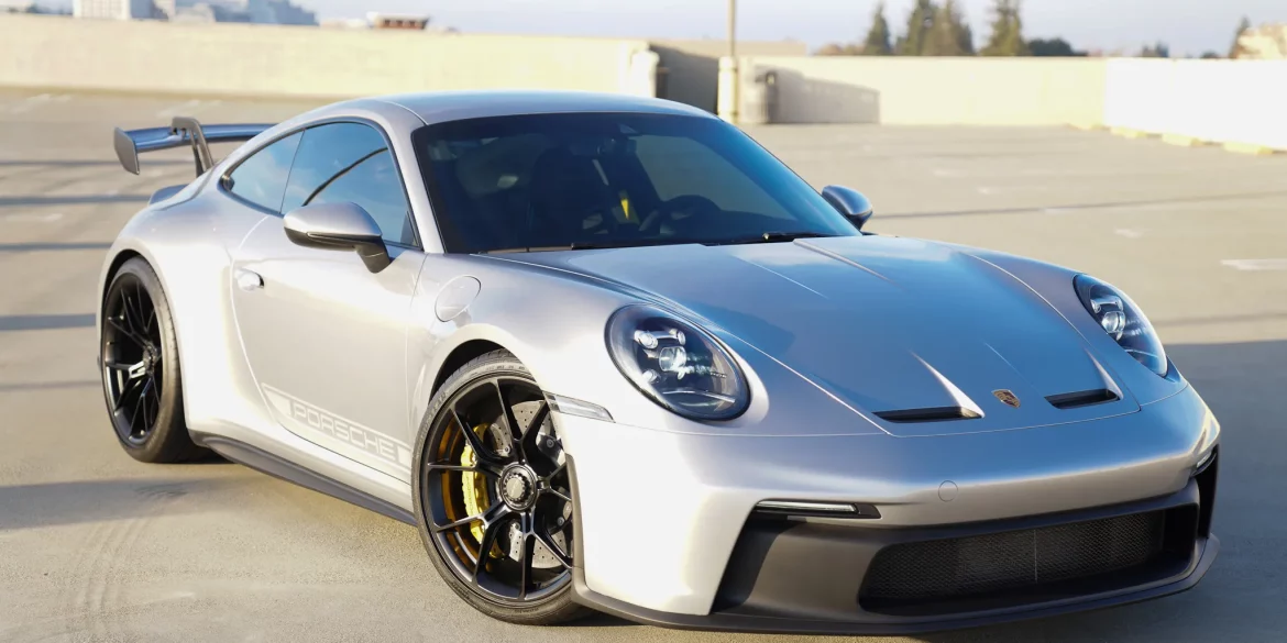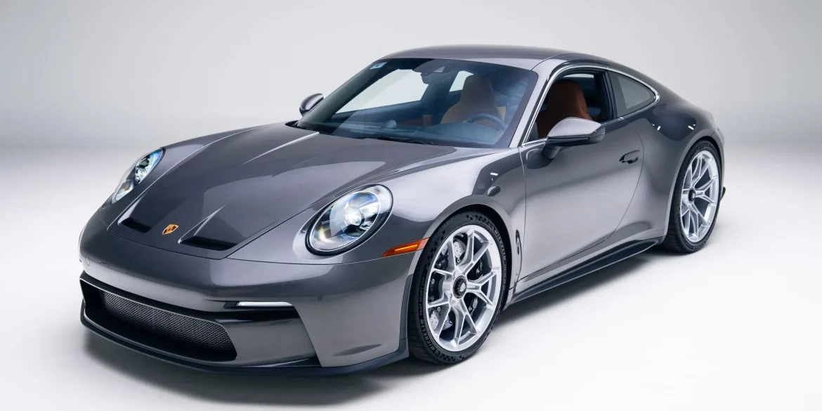 This 2024 Porsche 911 GT3 Touring is powered by a 4.0-liter flat-six that drives the rear wheels through a six-speed manual transaxle, and it was optioned with a $15k Exclusive Manufaktur Leather Interior, which houses heated 18-way adaptive Sport Plus seats trimmed in tan leather. Finished in Agate Gray Metallic,...