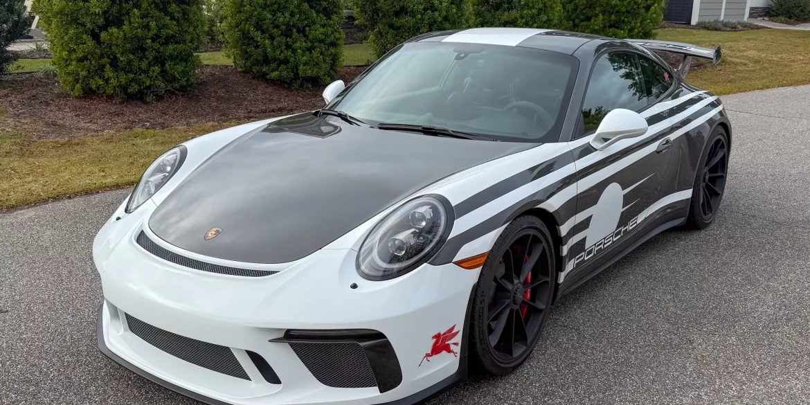 This 2019 Porsche 911 GT3 Touring has 4,400 miles and is powered by a 4.0-liter flat-six paired with a six-speed manual transaxle. Finished in Chalk over black leather and cloth upholstery, the car is equipped with the Sport Chrono Package, the Touring Package in Black, 20″ center-lock alloy wheels, Porsche...