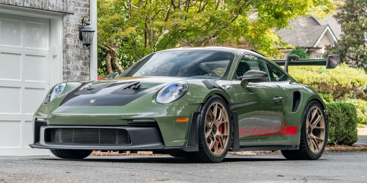 This 2024 Porsche 911 GT3 RS is finished in paint-to-sample Nato Olive over black leather and Race-Tex upholstery, and is powered by a 4.0-liter flat-six that drives the rear wheels through a seven-speed PDK dual-clutch automatic transaxle. It was specified with Porsche Ceramic Composite Brakes, LED-Matrix Design headlights with PDLS+,...