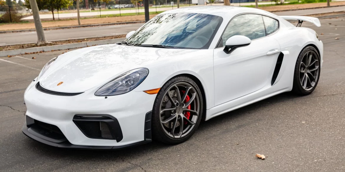 This 2020 Porsche 718 Cayman GT4 is finished in White over Black leather and Alcantara and is powered by a 4.0-liter flat-six paired with a six-speed manual transaxle and a limited-slip differential with PTV. It is equipped with the Sport Chrono Package, heated 18-way Adaptive Sport Seats Plus, a Bose...