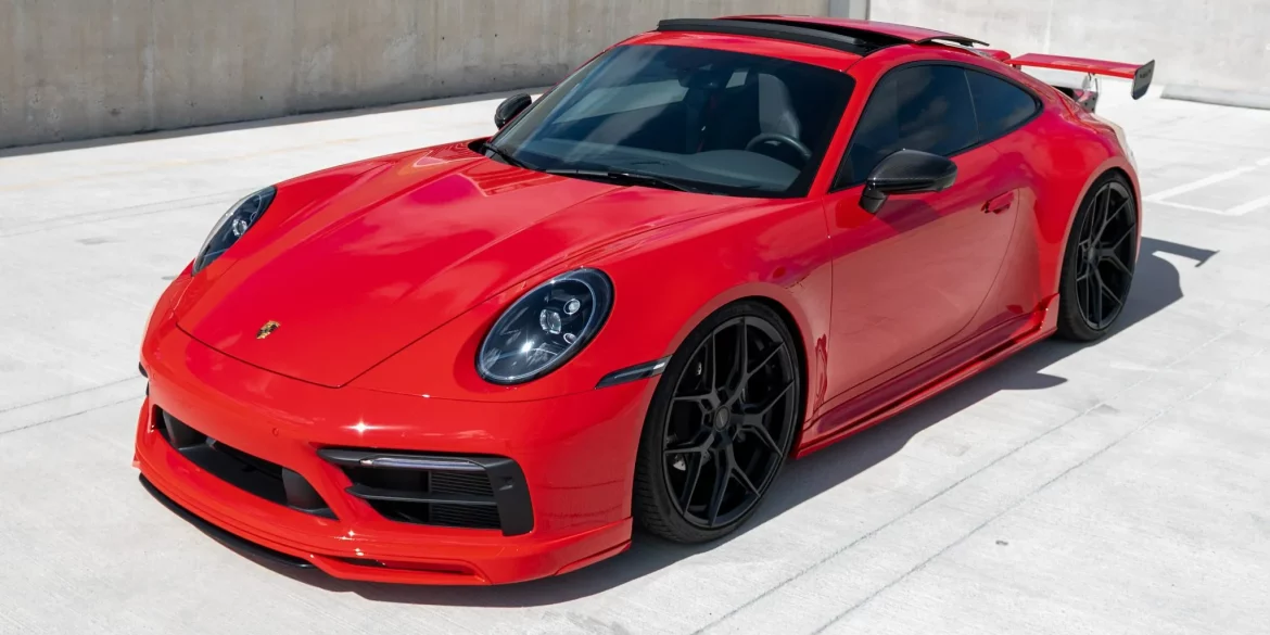 This 2021 Porsche 911 Carrera coupe was leased new and subsequently purchased by the seller, and has been fitted with 21″ and 22″ Vossen wheels, Tubi Style exhaust components, BMC air filters, GIAC ECU software, and TechArt modifications consisting of a rear diffuser, front and rear spoilers, rear wing, side...