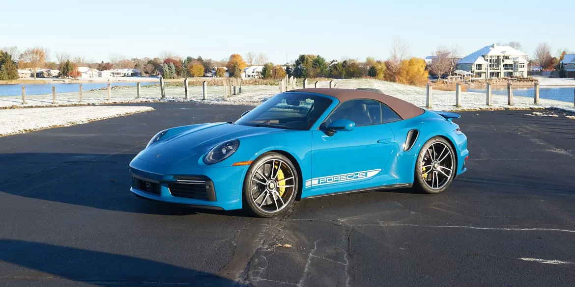 This 2025 Porsche 911 Turbo S cabriolet is finished in paint-to-sample Oslo Blue over Truffle Brown Club leather and is powered by a twin-turbocharged 3.7L flat-six linked with an eight-speed PDK dual-clutch automatic transaxle and all-wheel drive. The car has 2,600 miles and was specified from the factory with over...