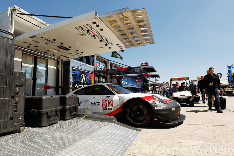 12 Hours of Sebring, 17 March 2018: In the paddock during practice, the #912 Porsche 911 RSR of Earl Bamber, Laurens Vanthoor and Gianmaria Bruni