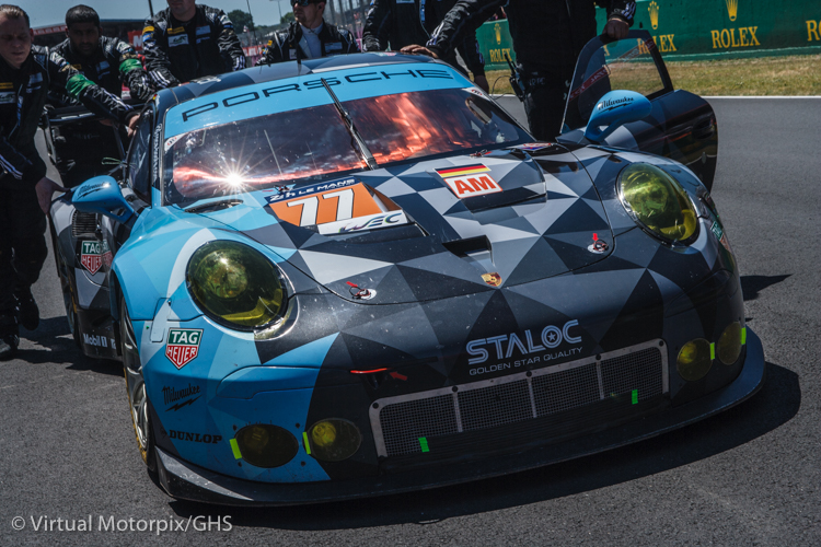 Lost in the drama of the LMP1 happenings is the fact that the #91 RSR had retaken the lead in the GTE Pro class. One radio commentator called the GTE Pro rivalry a ‘bar brawl’ such was the intensity of the competition. But for the RSR to stay at the top of its class was perhaps a wish too far, as it crossed the line in fourth place. The GTE Am class was a bit of a whitewash as Ferraris took the first three positions, with the #77 Dempsey Proton RSR (2015) coming home in fourth place.