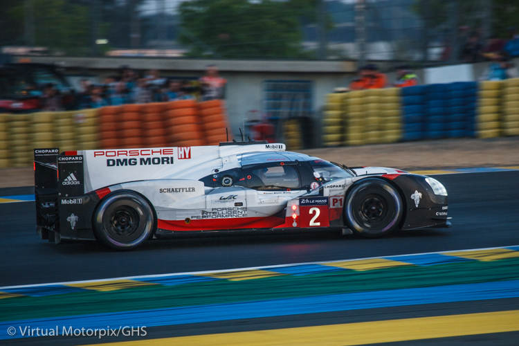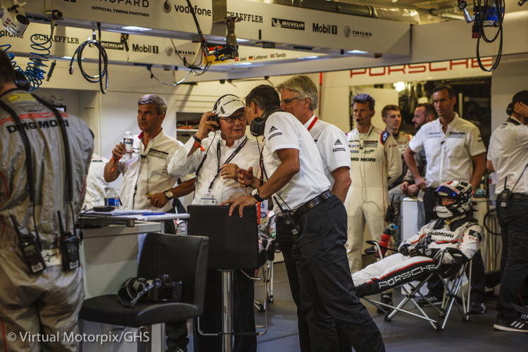 Neel Jani immediately overtook the #8 Toyota at the start of the race, moving up into second place, and but he lost this place again to the #8 Toyota not long after. When it came time for refuelling after 13 laps, Jani stayed in the car, as he did with the following two fuel stops, handing the car to Nick Tandy on lap 39. Timo Bernhard started in the #2 Porsche in fifth place and, refuelling after 12, 25, and 38 laps, he handed the car over to Earl Bamber in fourth place.