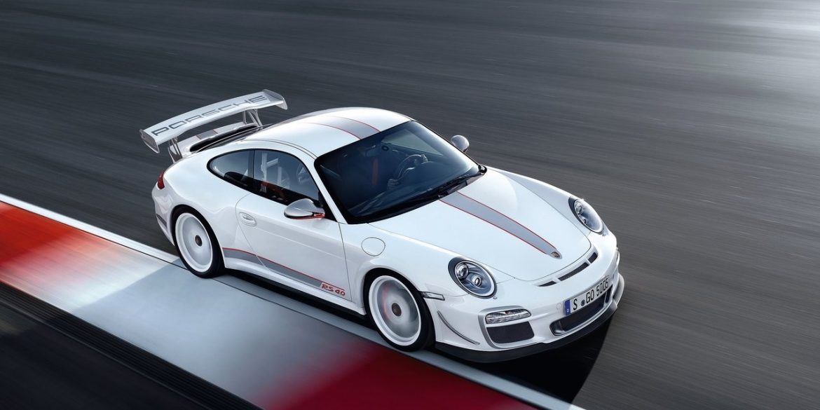The 997 911 GT3 RS is an even lighter and more purist version of the 911 than the regular GT3. 20 kilograms lighter than the GT3 and equipped with a close-ratio six speed manual the GT3 RS gets to 60 mph 1/10th of a second faster than the GT3. The 911 GT3 RS is 44mm wider at the rear than the GT3. The wider track helps improve directional stability when cornering. Weight savings can be found throughout the car. The Clubsport version there is a bolted roll cage, a six-point harness for the driver and a built in fire extinguisher.