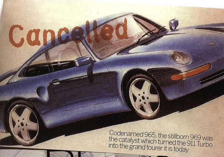In 1988, Porsche produced a two-door called the 969, based upon the bodystyling of the 911. Intended as the successor to the Porsche 930, the car did not get past the prototype stage. Porsche intended to create a more powerful, range topping model, based loosely upon the 911. The 969 was to feature a hugely powerful twin-turbocharged engine, and was to pick up where the Porsche 959 left off, using much of the supercar's technology.