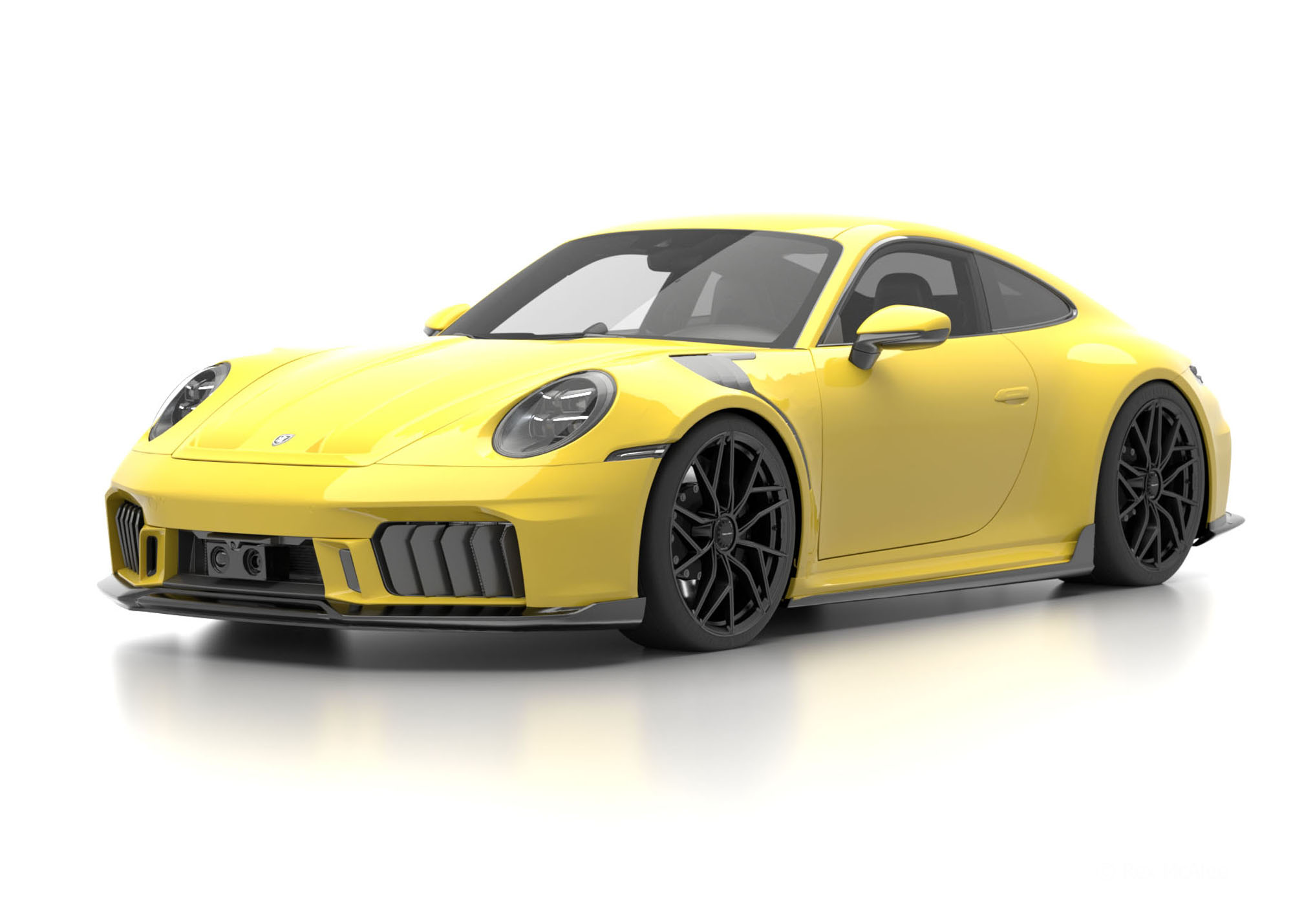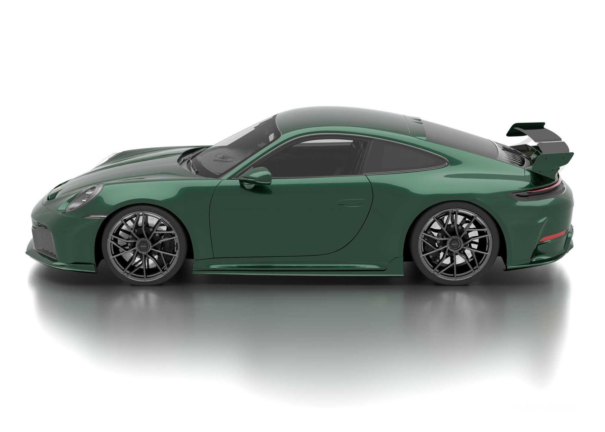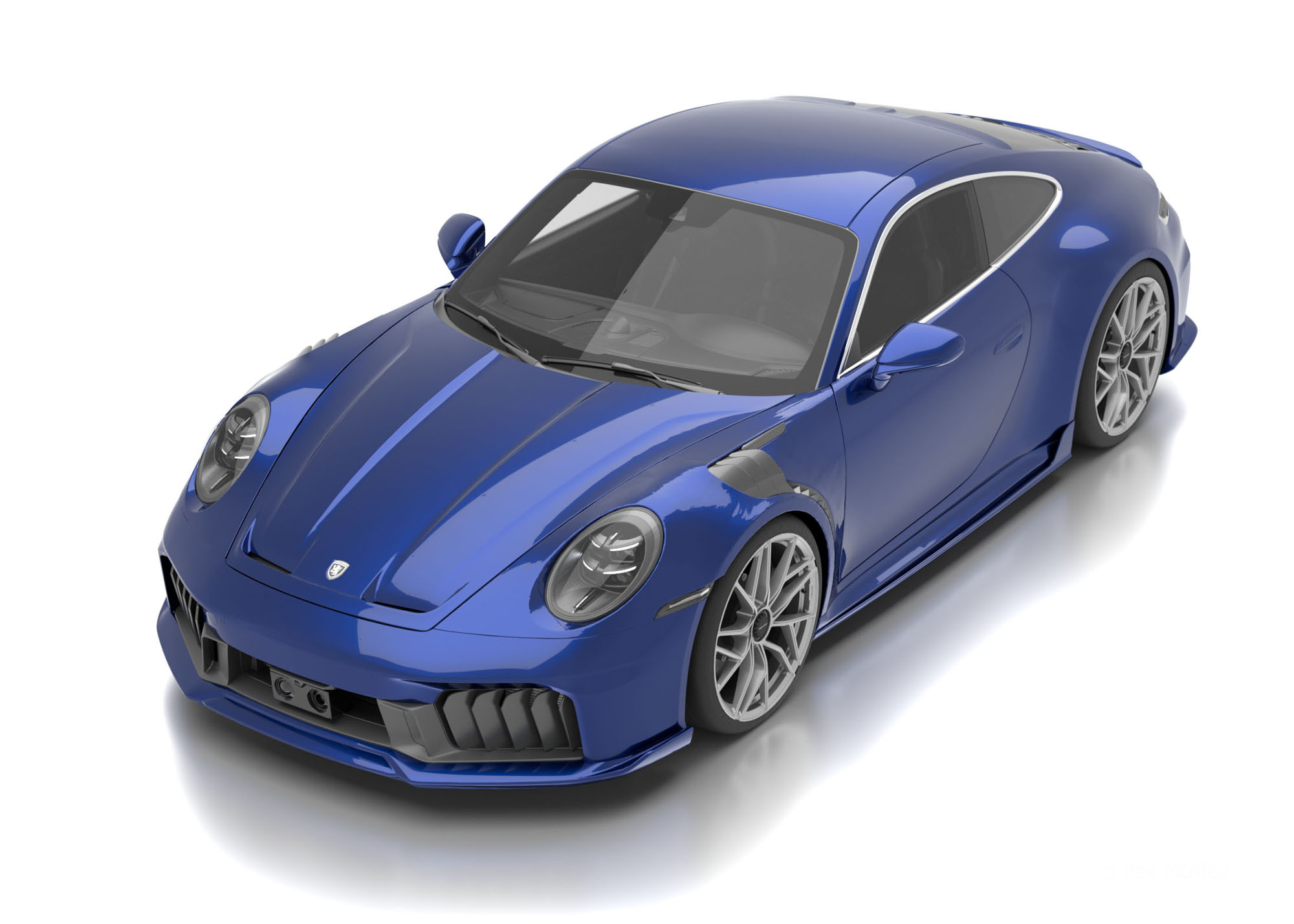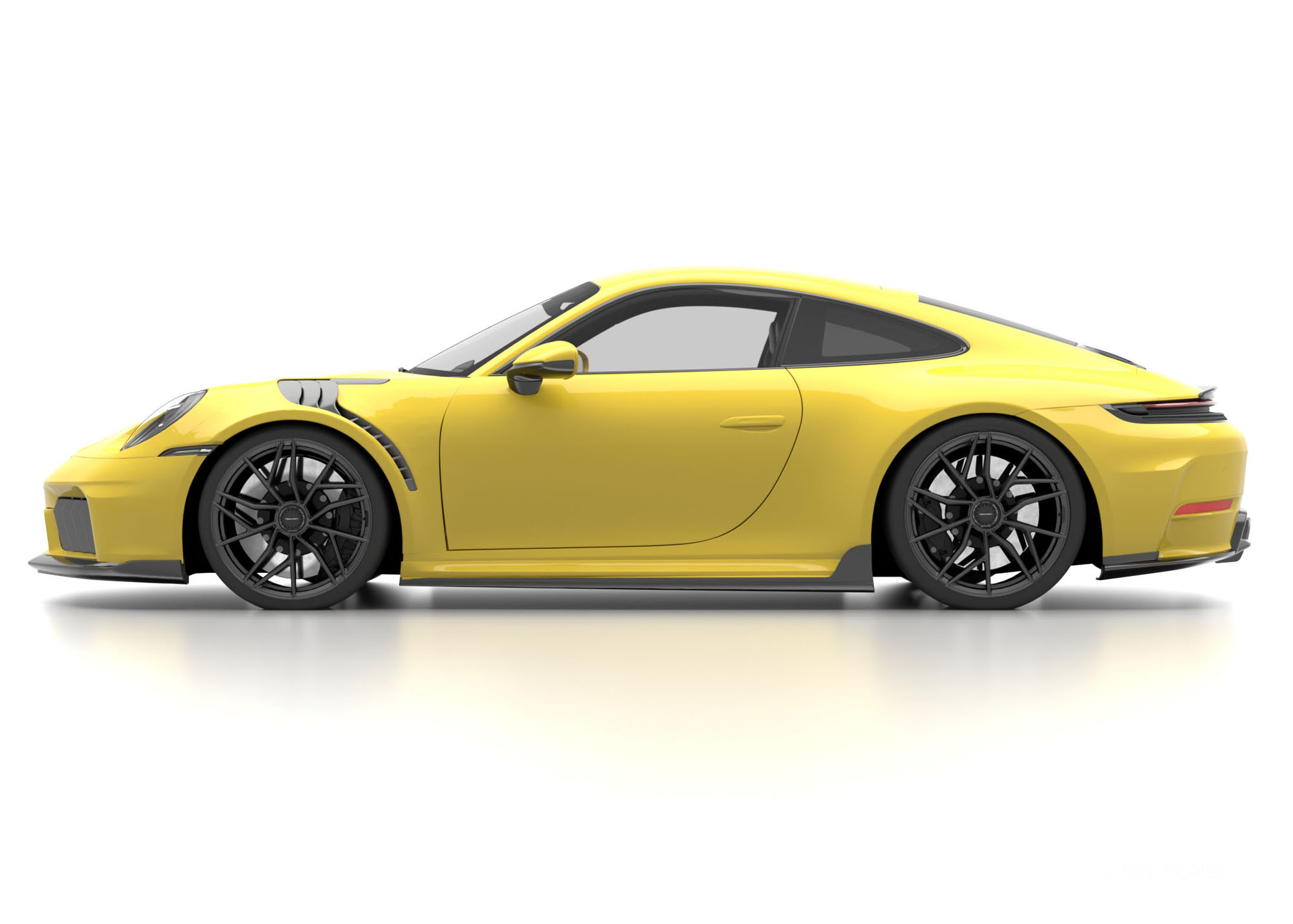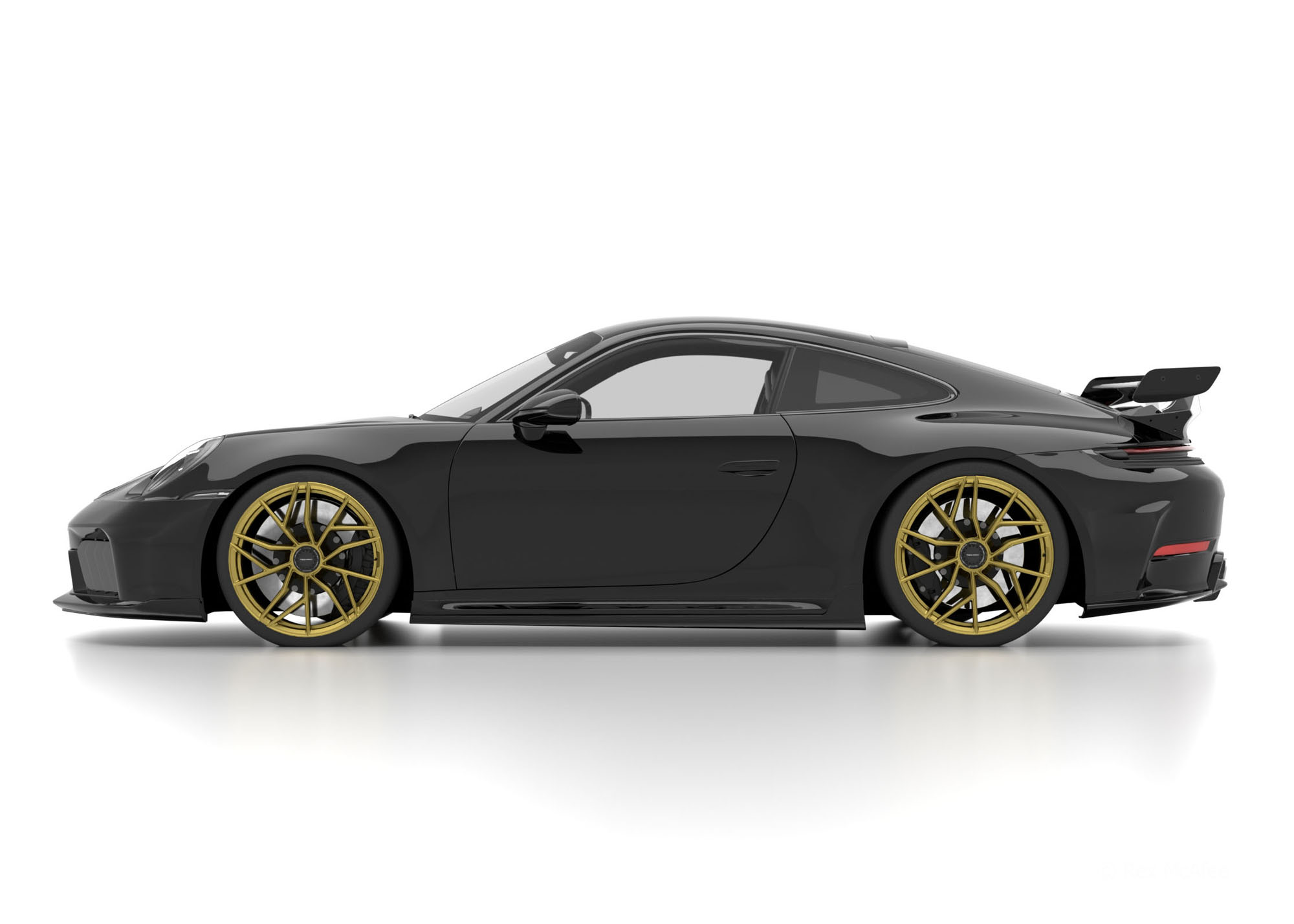 The aerokit includes newly developed components for the front, sides and rear. Each element follows the design lines of the Porsche 992.2 and complements them with functional aerodynamic details.