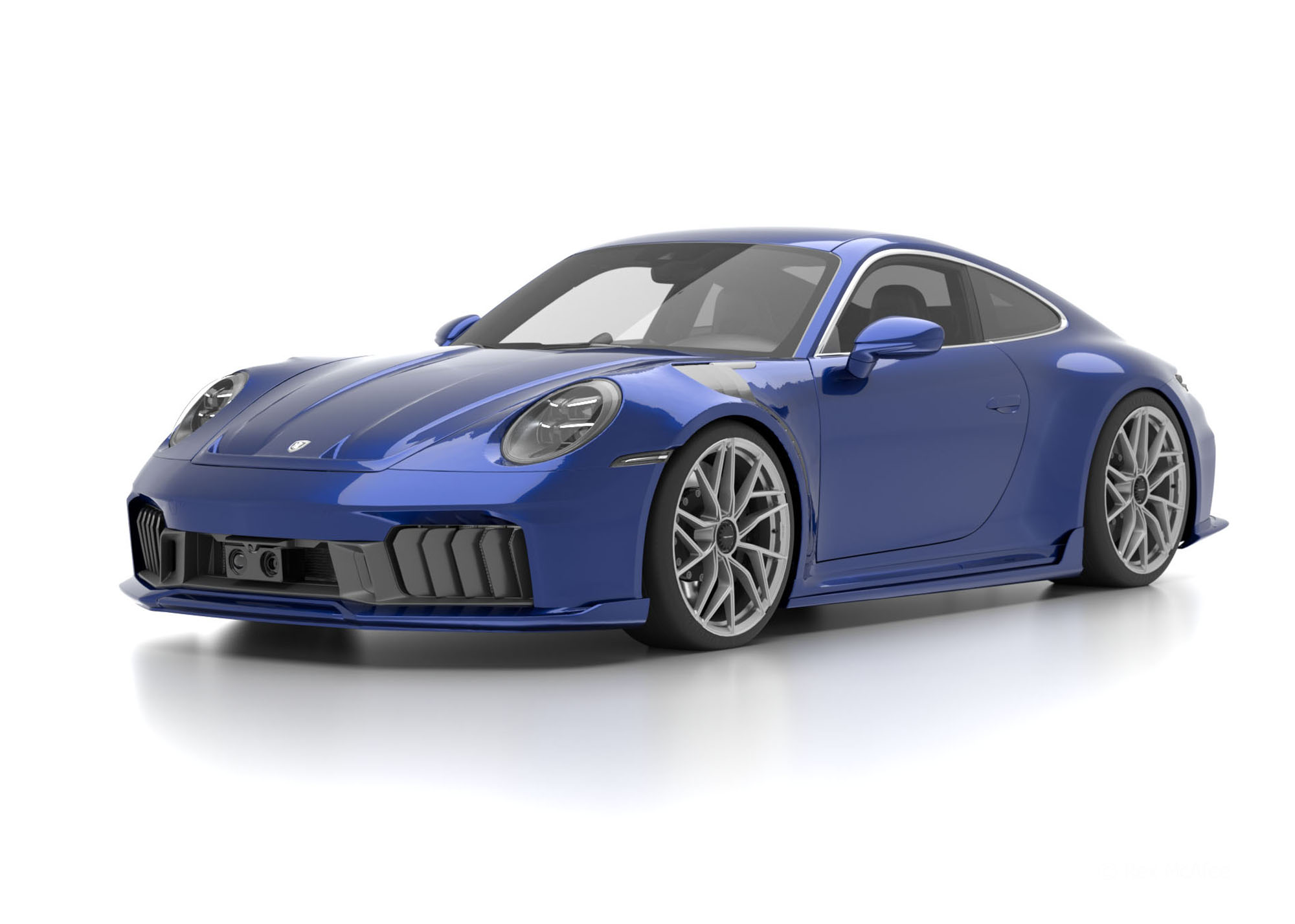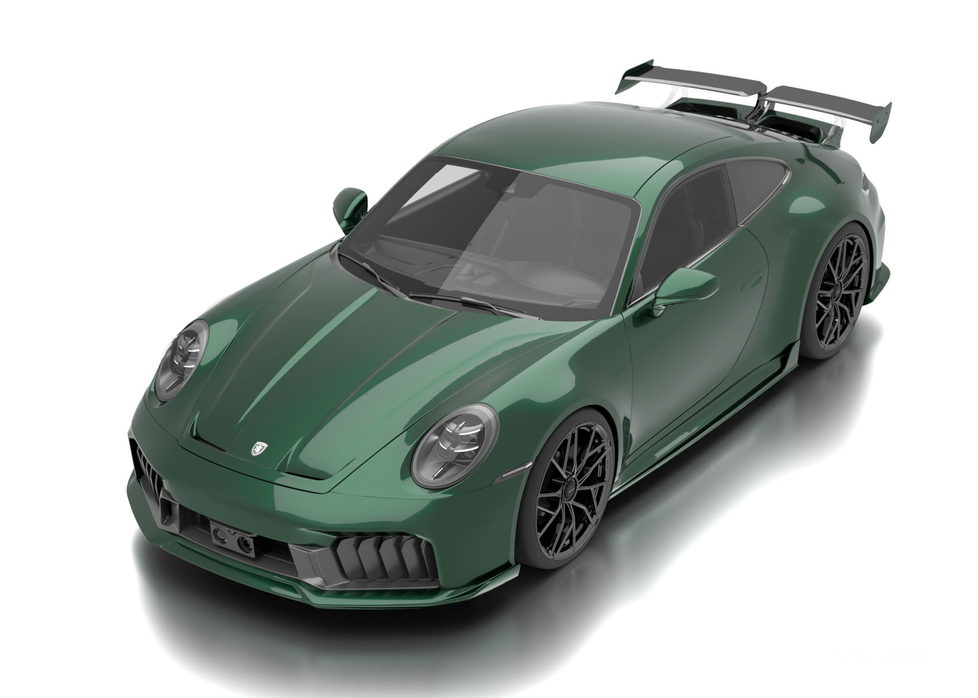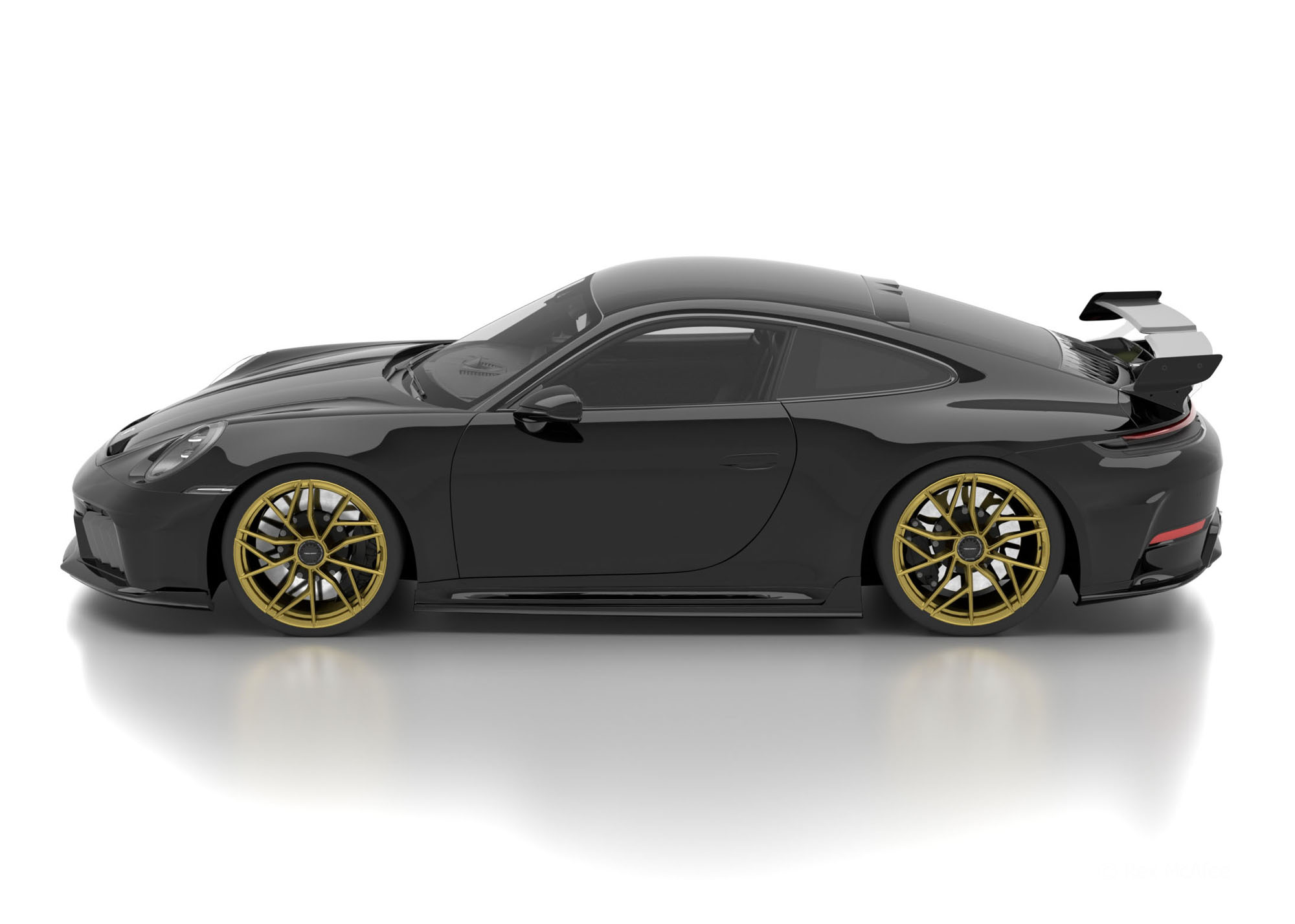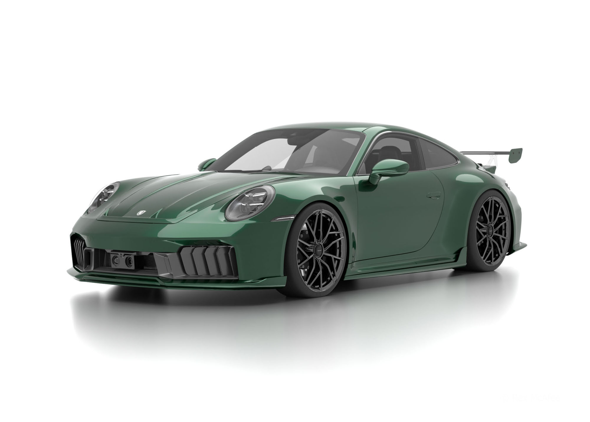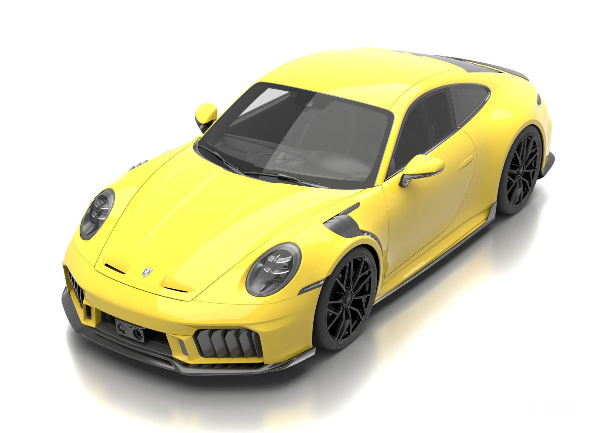 The aerokit includes newly developed components for the front, sides and rear. Each element follows the design lines of the Porsche 992.2 and complements them with functional aerodynamic details.