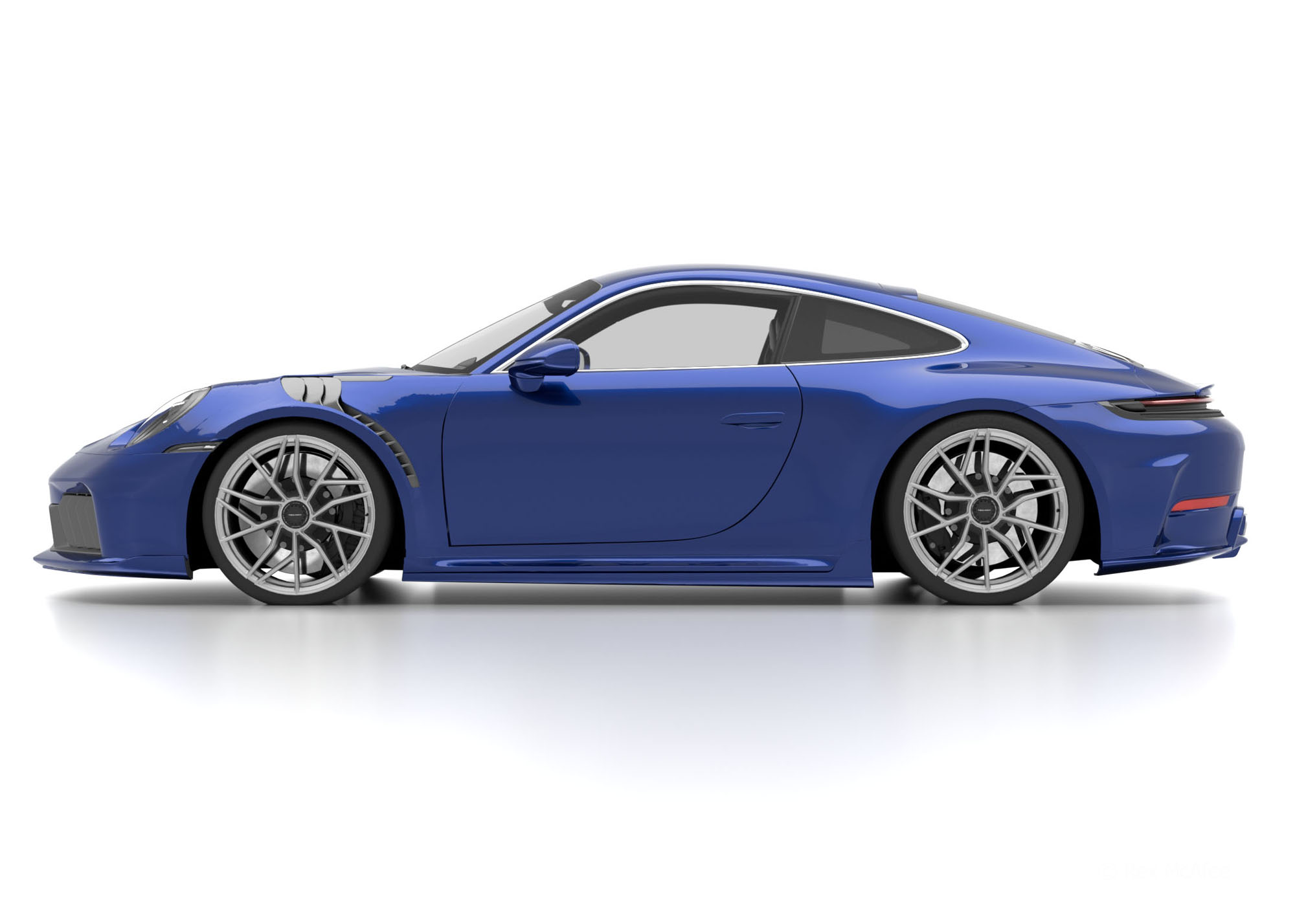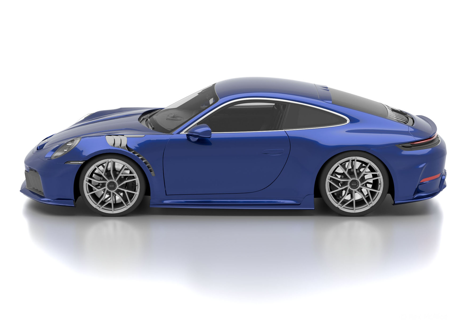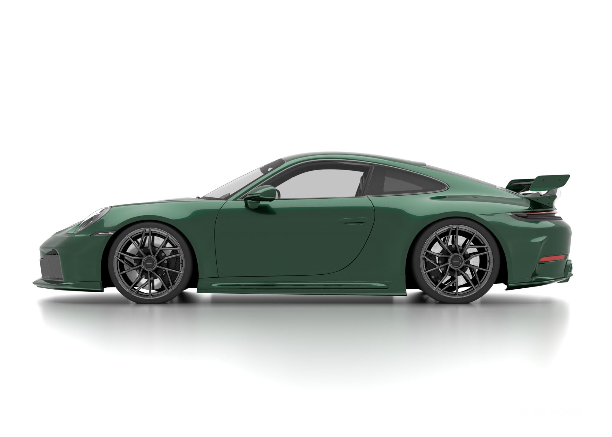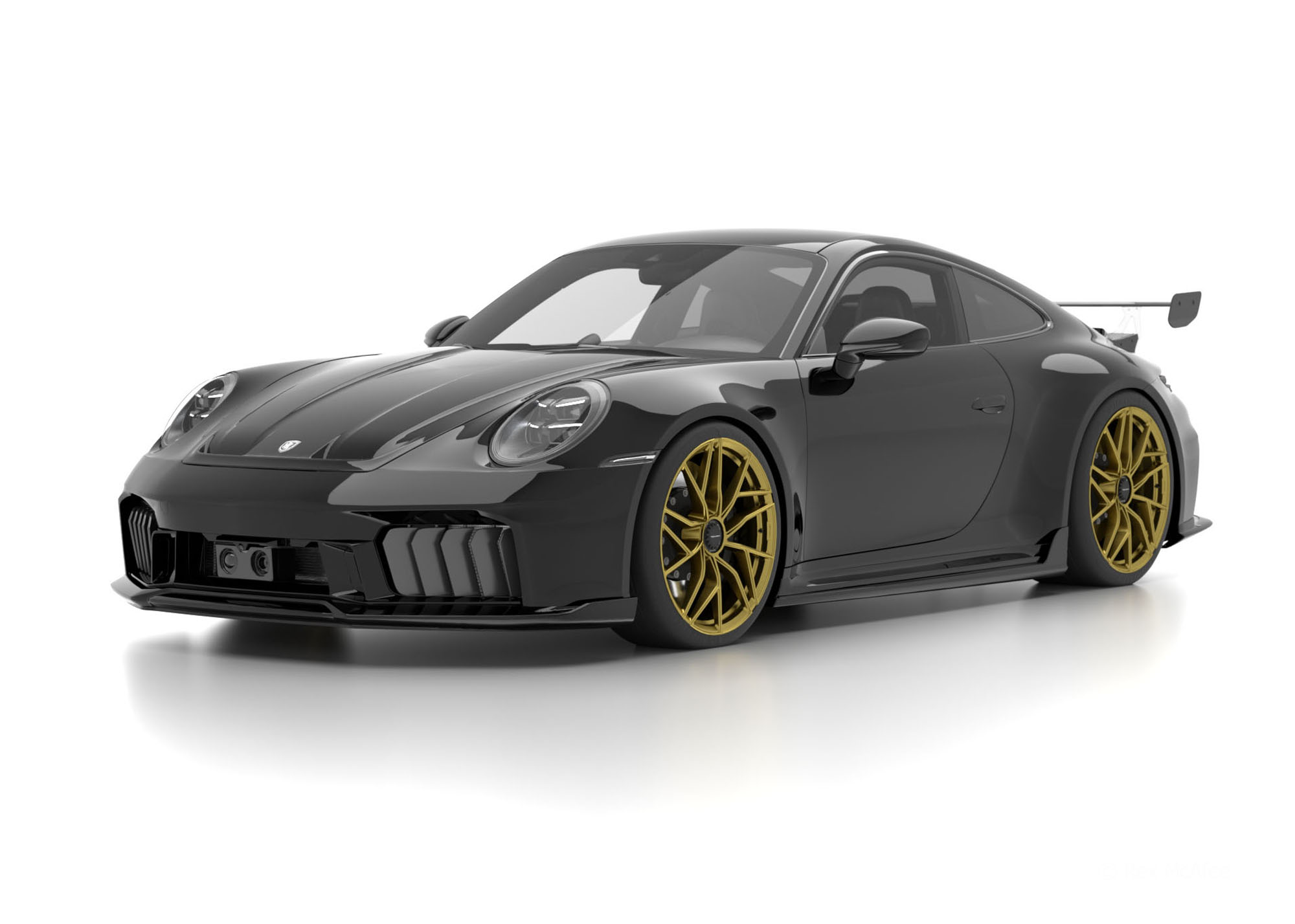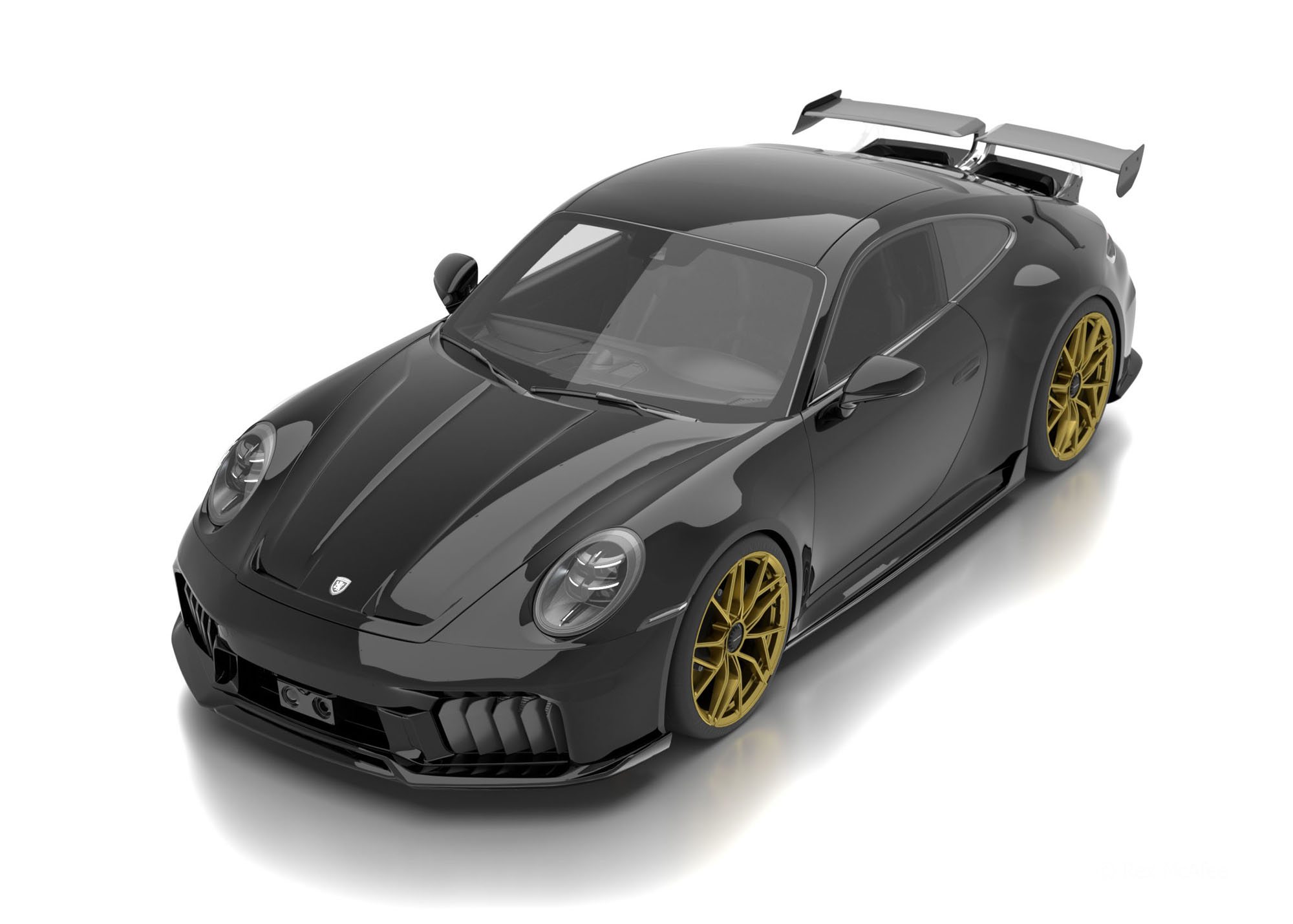 The aerokit includes newly developed components for the front, sides and rear. Each element follows the design lines of the Porsche 992.2 and complements them with functional aerodynamic details.