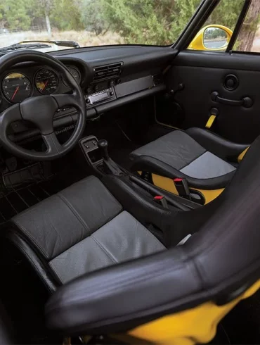 The 3.8-liter engine elevated the experience even further. This wasn’t about headline power figures—it was about response, torque, and durability. The engine pulled harder everywhere than earlier RS models, making the car feel more muscular and authoritative, particularly at high speeds. Where earlier RS cars felt nervous and alive, the 993 RS felt controlled and relentless, more endurance racer than homologation special. It was the moment Porsche proved that air-cooled performance had not yet hit its ceiling.