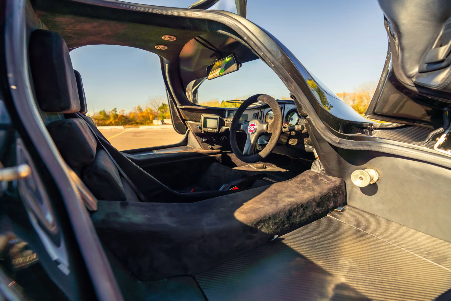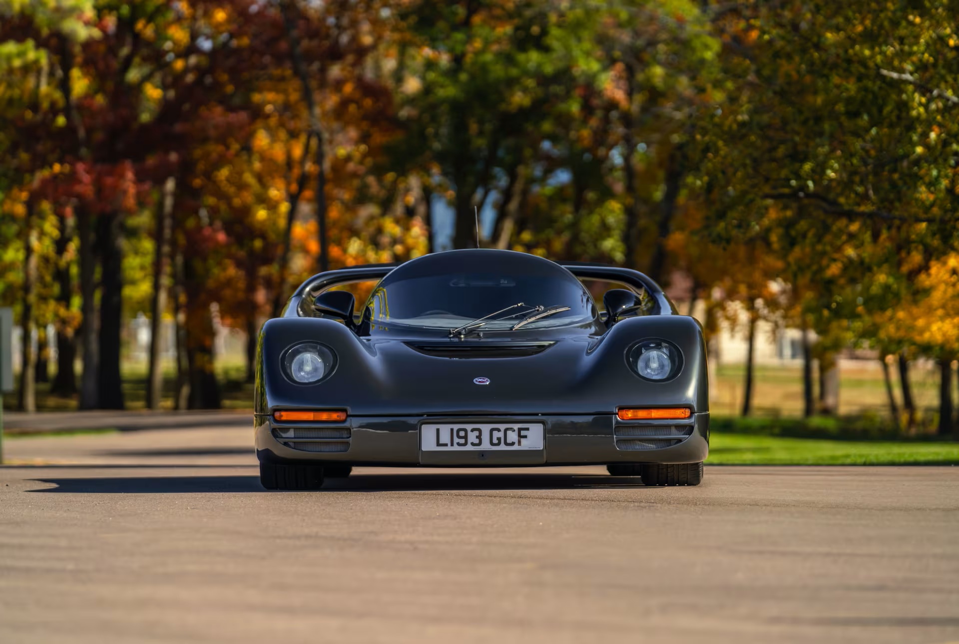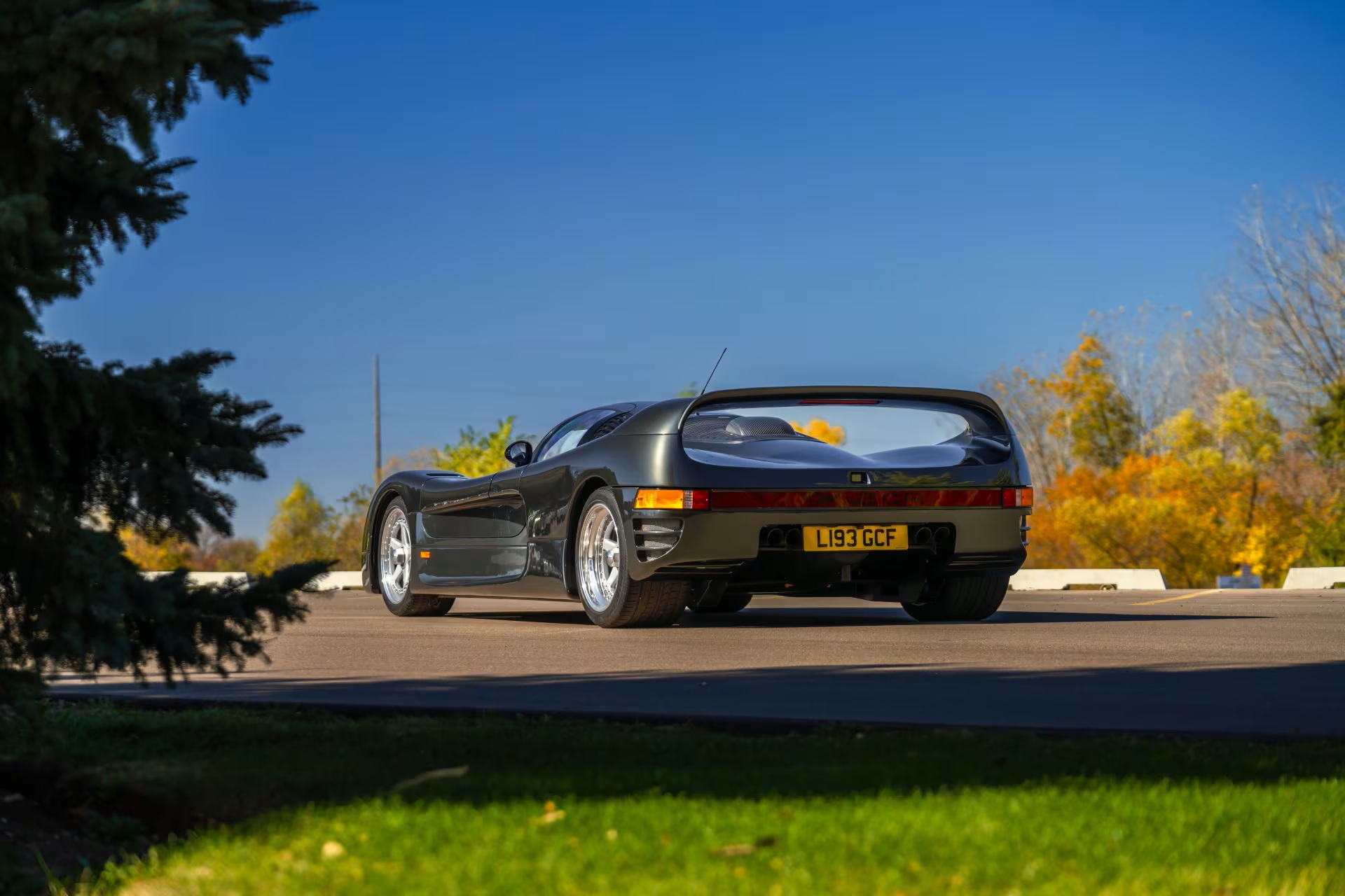 Extensive documentation accompanies the car, including a Vern Schuppan Limited sales brochure, certificate of authenticity, provenance declaration, U.K. registration document, and MOT certificates. It retains its original black-on-black color scheme with Michael Simcoe’s 959-inspired design and Reynard’s wider carbon fiber chassis.
