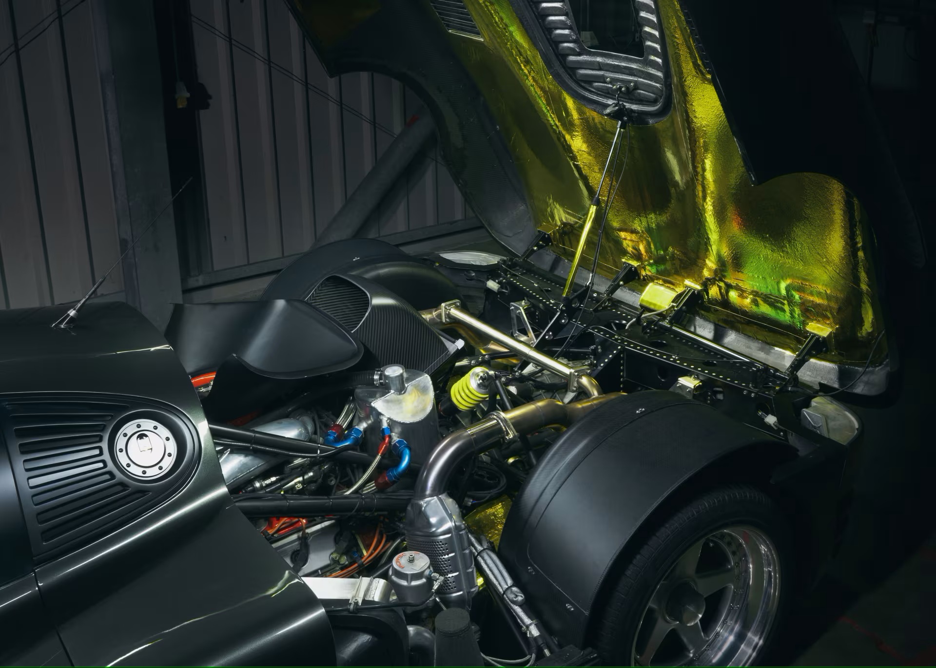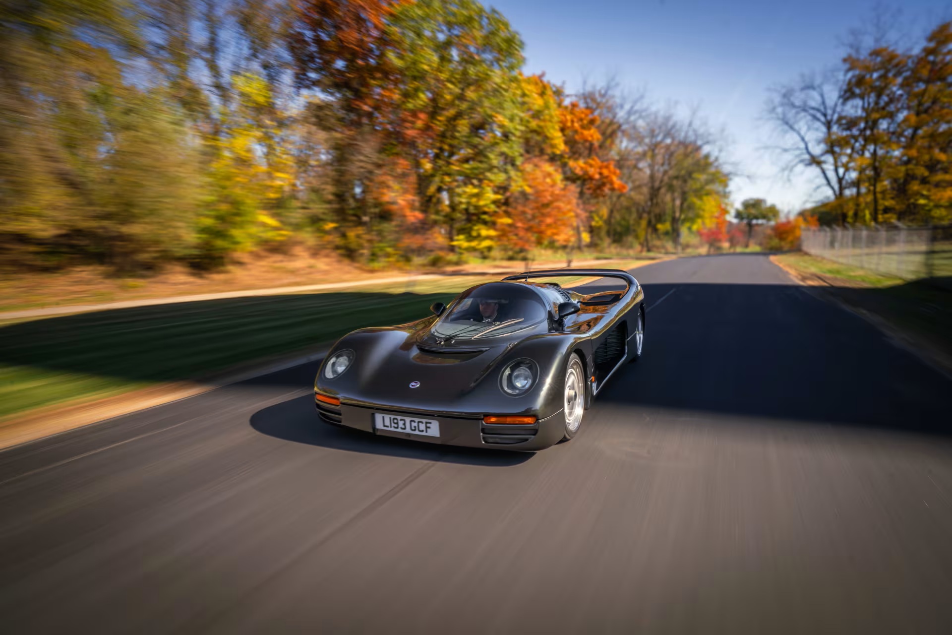 The 962CR featured an all-carbon fiber chassis, widened by two inches for more interior space. Modifications included redesigned doors for road use, improved rear cooling vents, and a more luxurious interior with leather seats, air conditioning, a sound system, and a rear-view camera. Powered by a 3.4L twin-turbo flat-6 engine designed by Porsche engineer Hans Mezger, the 962CR produced over 600 HP and reached a top speed of 230 MPH, briefly holding the title of the world’s fastest production car in 1992.