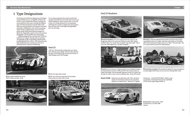 The book is divided into eight ‘Parts’ which are again divided into chapters. The eight parts include: Part I – The development of the Ford GT40; Part II – The Works Teams and the GT40; Part III – The Big Ones; Part IV – Gulf; Part V – The Production Line Racer; Part VI – Chassis and Drivers; Part VII – The Magic Lives On; Part VIII – And Still the Magic Lives On. The coverage in each of those Parts is really comprehensive, for instance in Part II, this includes Ford Advanced Vehicles (1964), Shelby American (1965), and Alan Mann Racing (1966). Part III includes Prototypes, The Mark II, From J-car to Mark IV, and Group 7 Racing. Part VI which covers Chassis and Drivers, the data section, offers the reader and Ford GT40 enthusiast a wealth of important and interesting historic information including résumés of type designations, chassis histories as well as information on all the drivers who raced GT40s.