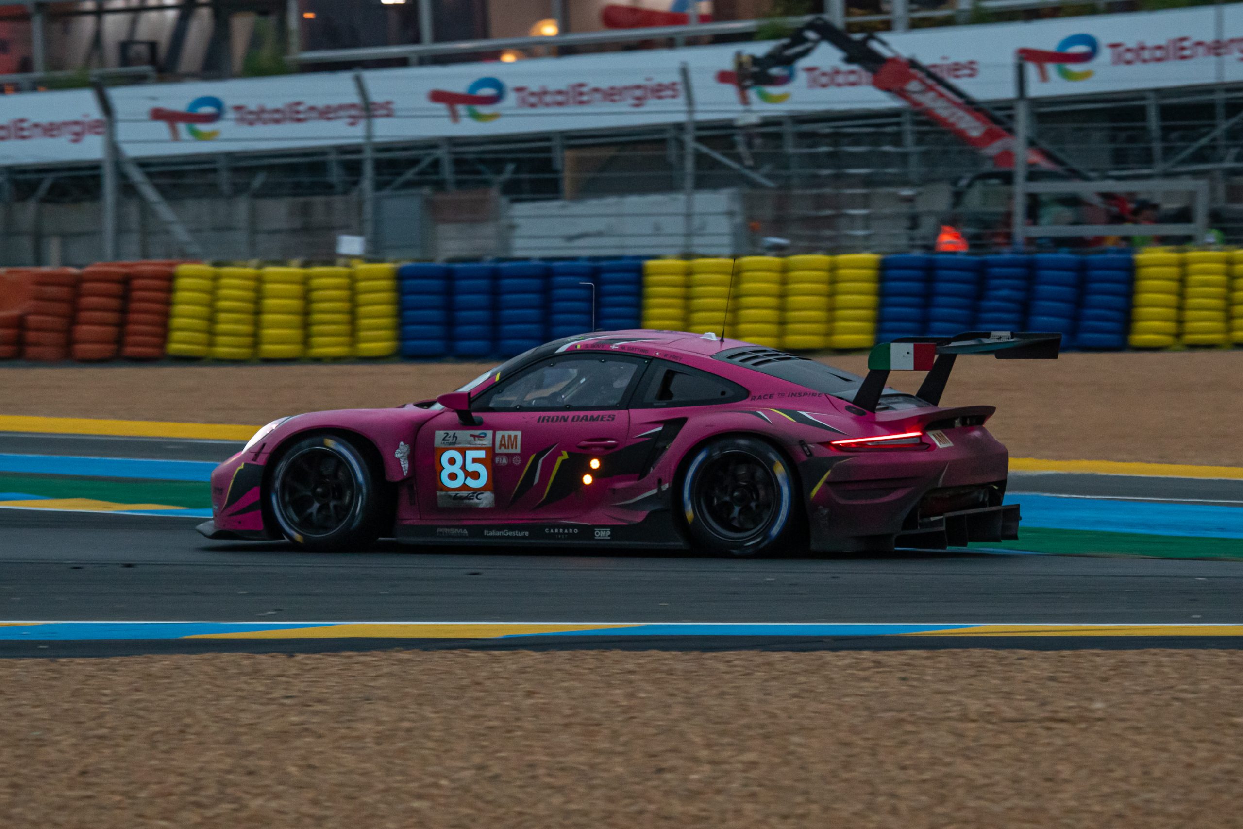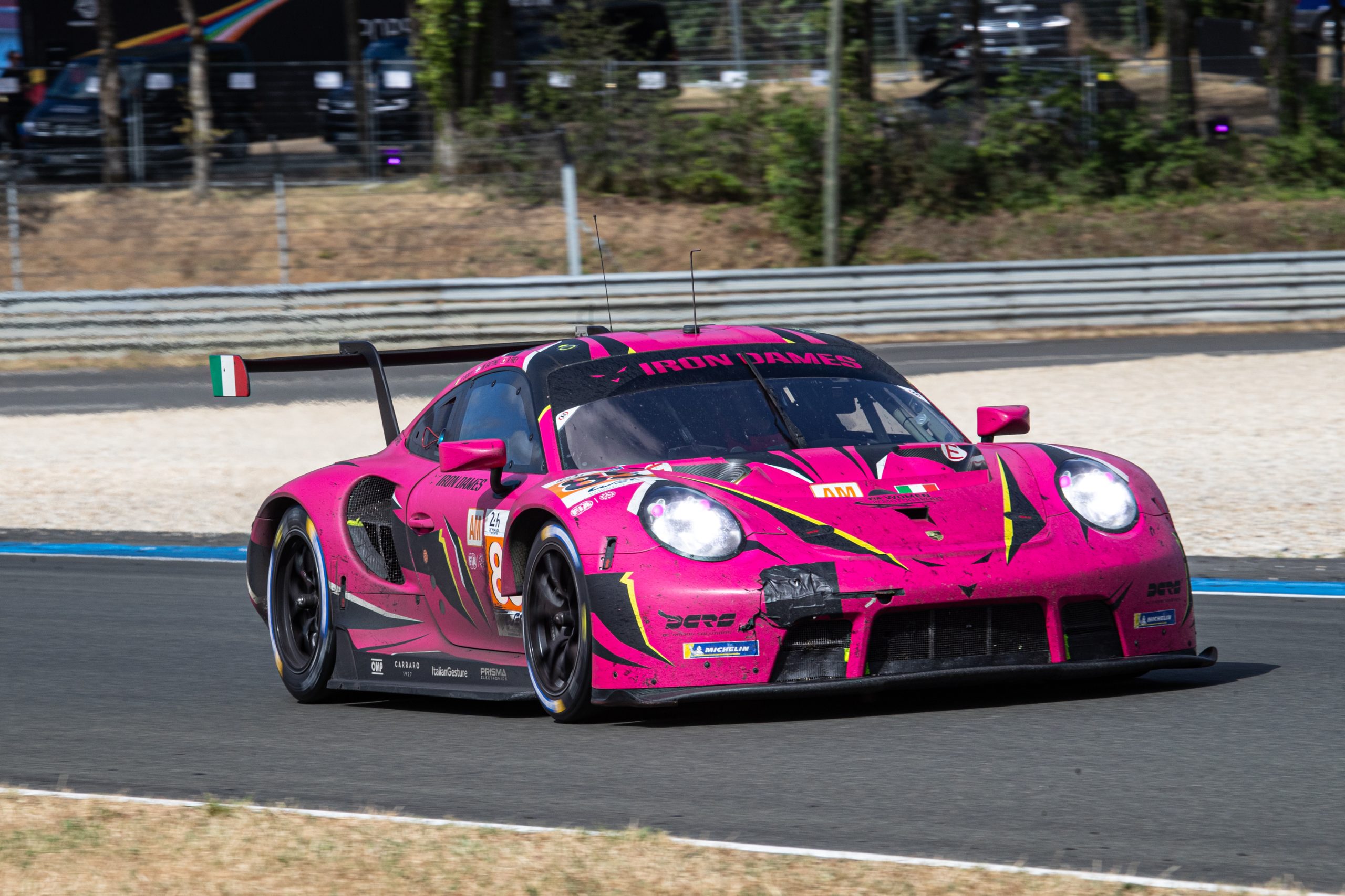 It is always hard to paint an accurate picture of the progress of any race car throughout a 24-hour period, especially when you are photographing track side, because you only have the first-second-third indicator lights to go by. It is only when returning to the media centre when you can watch the actual race as a whole on TV and compare each car on the timing screens, to see how it is doing. With the No. 85 Iron Dames Porsche it was no different, but it seemed that the likeable pink Porsche was always up in the lead group, because that is where it rightfully belonged.