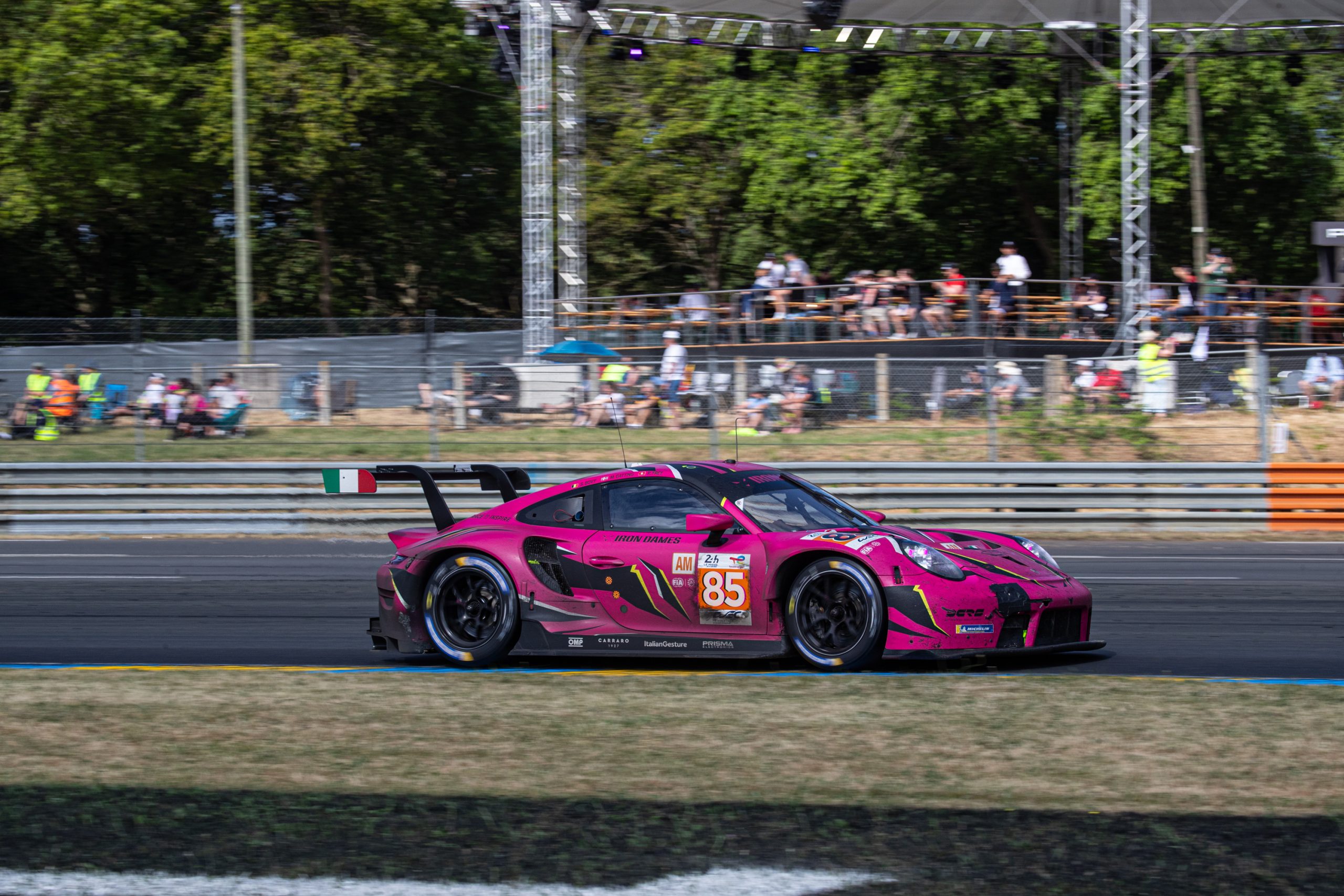 Our story here concerns the all-female line-up in the 2023 Le Mans 24 Hours of Rahel Frey, Michelle Gatting and Sarah Bovy, driving the No. 85 Iron Dames Porsche 911 RSR. If one had to examine the entries today in the light of the national colours of old, it is not certain where the pink Porsche would hail from, but be that as it may, this car finished the 2023 race sounding as sweet on Sunday afternoon at 16h00 as it had done 24 hours earlier.
