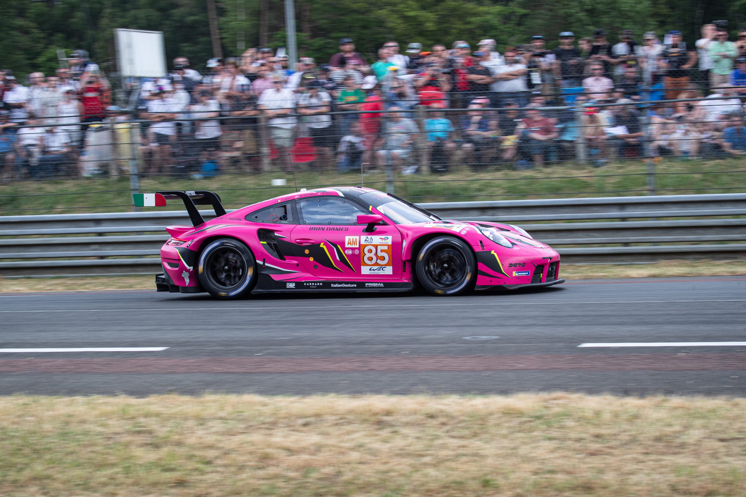 In the 2023 Le Mans 24 Hour race, the Iron Dames team of Sarah Bovy, Rahel Frey and Michelle Gatting driving the No. 85 Porsche 911 RSR, was the only all-female squad in the centennial race. This was the third time that this particular threesome had driven together at Le Mans, on the previous two occasions they had been behind the wheel of a Ferrari 488 GTE Evo, but this year they would be in a Porsche 911 RSR-19.