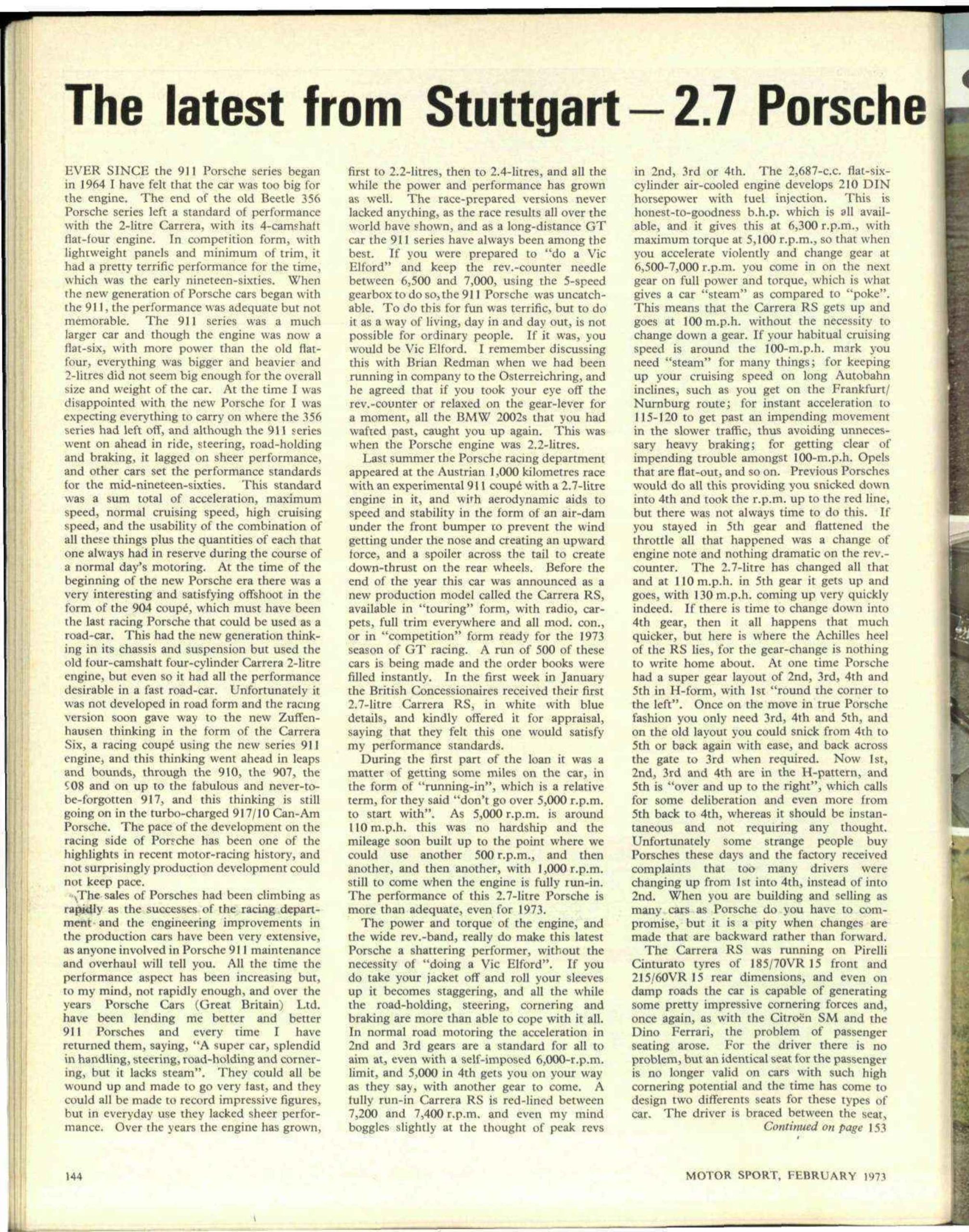 The Latest from Stuttgart – The Porsche 911 Carrera RS 2.7