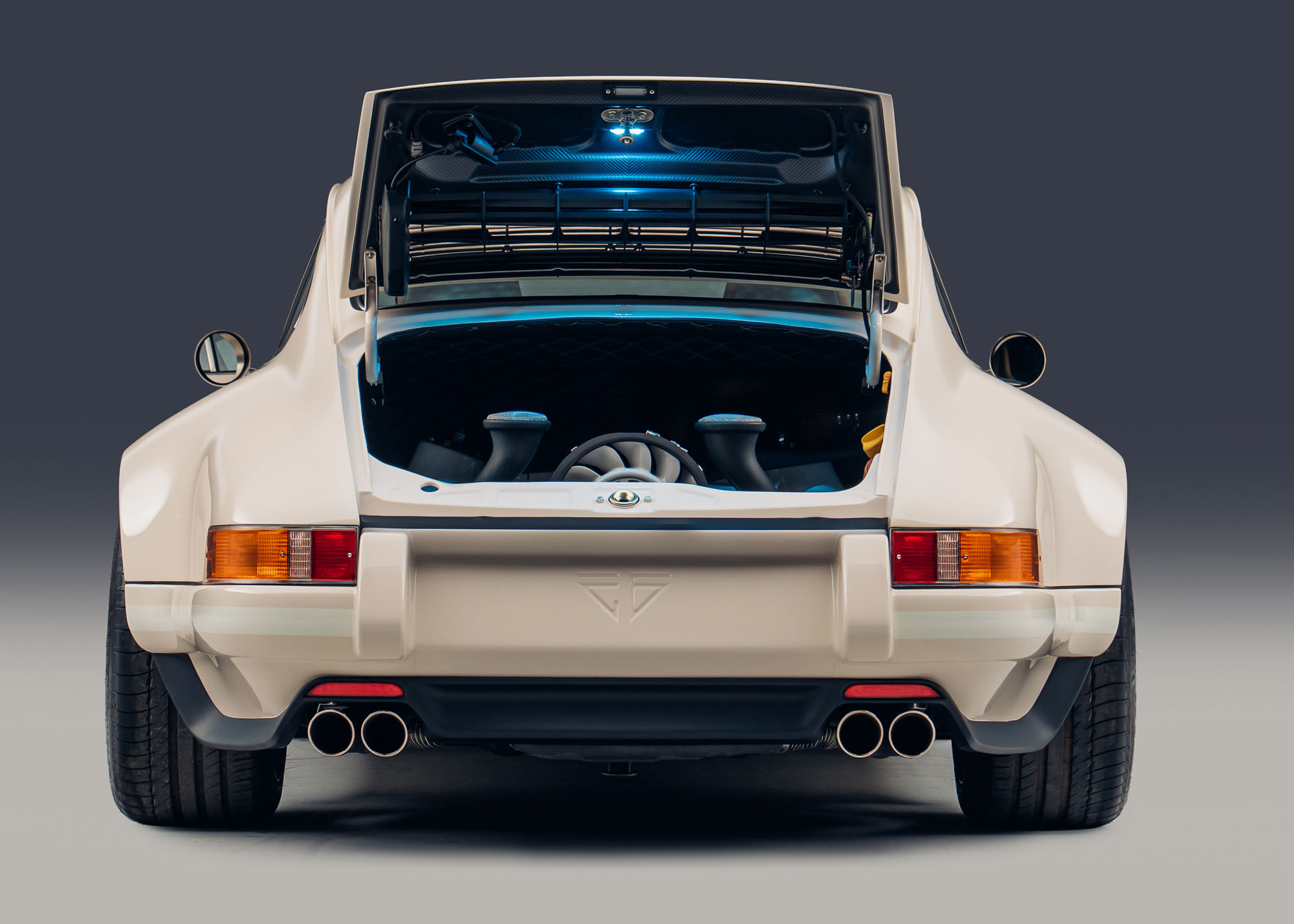 Finished in the elegant classic Porsche color of ‘Medium Ivory’, the 4.0-litre, 420bhp, 1150kg machine was created in close collaboration with the client to be a pared-back, timeless interpretation of the ultimate road-optimized, air-cooled Porsche 911. The commission’s classic, reserved exterior, belies searing, modern performance: it packs a better power to weight ratio than a 992 GT3 RS.
