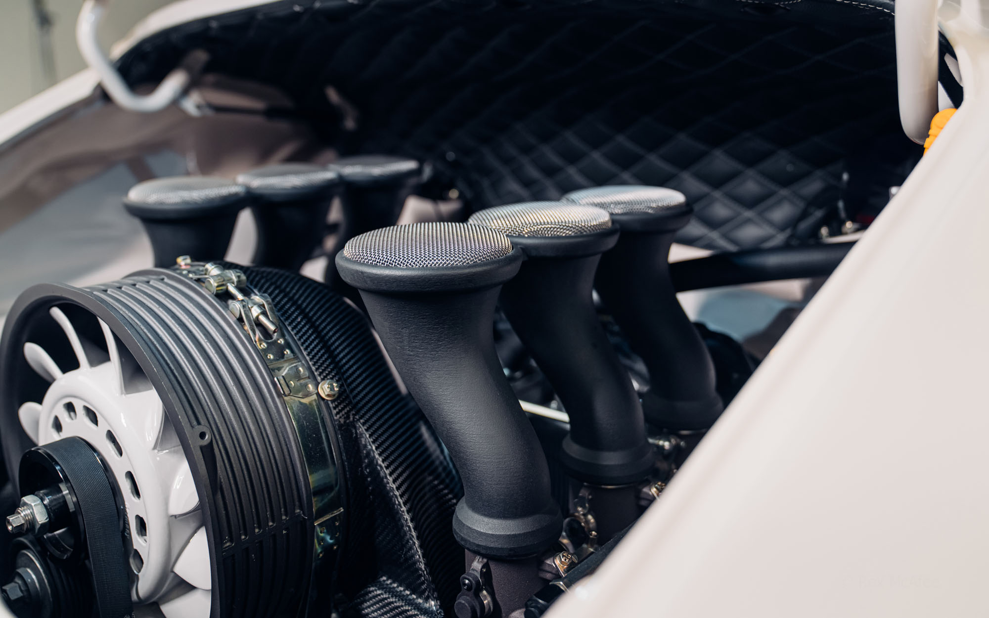 This potent, free-revving powerplant breathes through dramatic open engine trumpets, carefully shaped to optimize torque delivery, whilst also delivering a wonderful, evocative intake rasp that vividly recalls the RSR race cars of the 1970s.