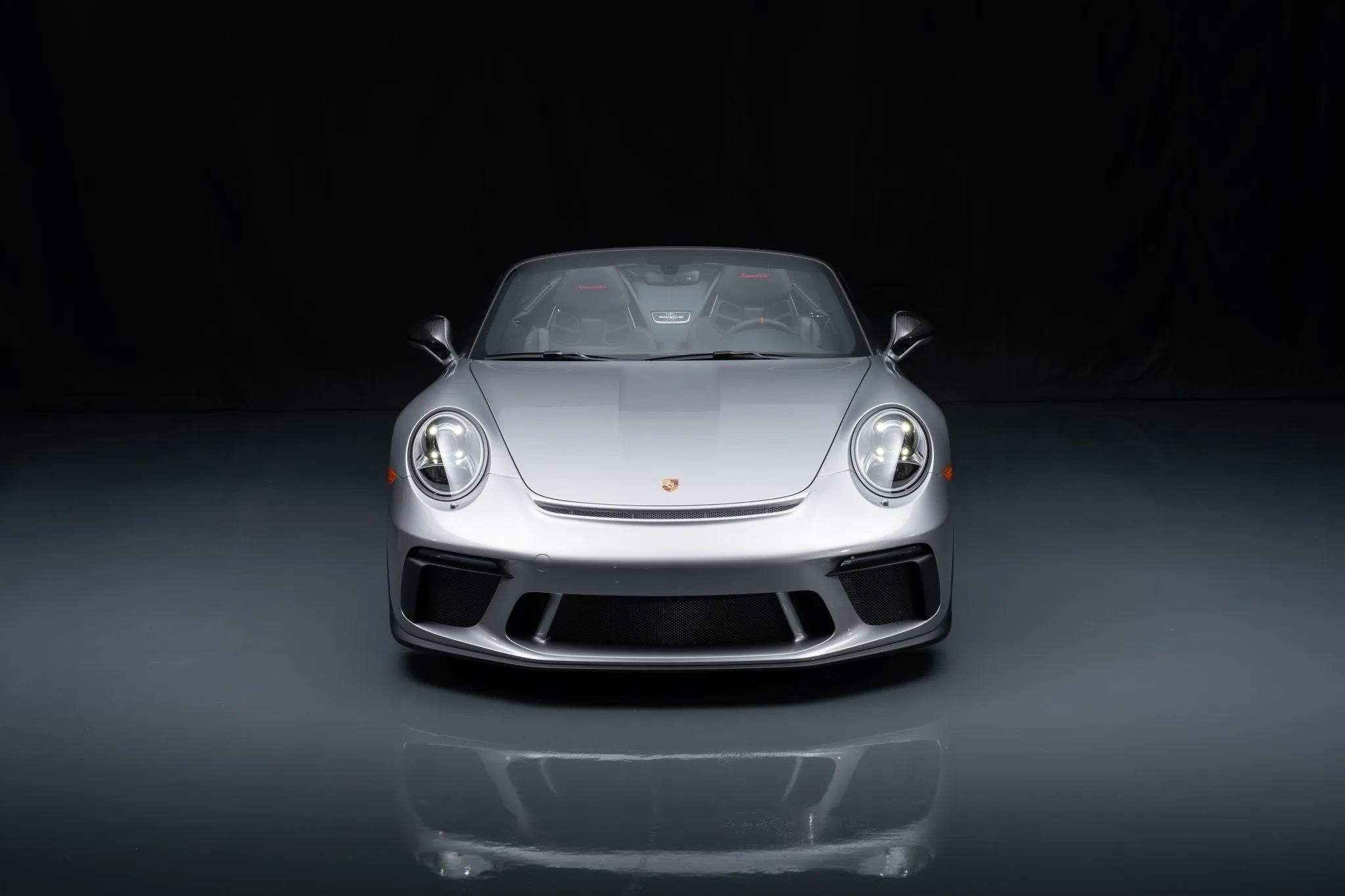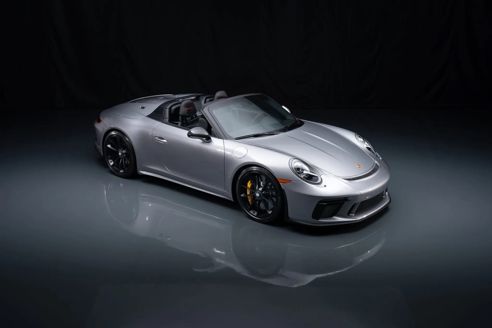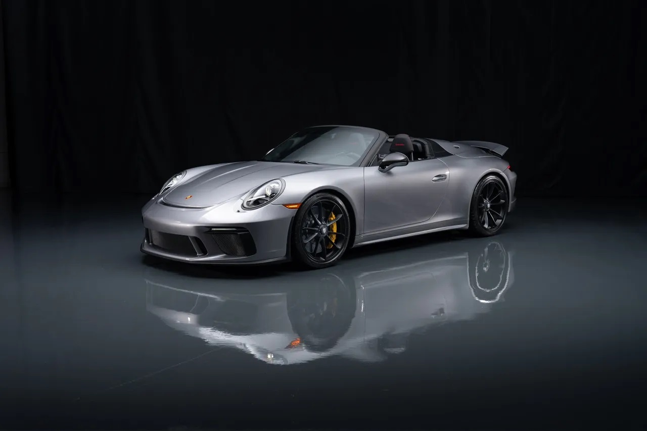 This 2019 Porsche 911 Speedster, number 1,716 of 1,948 produced for the model year, has only 12 miles on it since new. It is powered by a 4.0-liter flat-six engine producing 502 horsepower and 346 lb-ft of torque, paired with a six-speed manual transaxle, and finished in GT Silver Metallic.