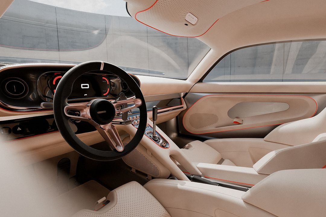 Inside, the GT One offers an exclusive two-seater beige interior with a digital instrument panel, a classic three-spoke steering wheel, racing-style switches, built-in rollover protection, and carbon fiber door elements. The car’s equipment includes double-wishbone suspension, carbon-ceramic brakes, and custom brake calipers.
