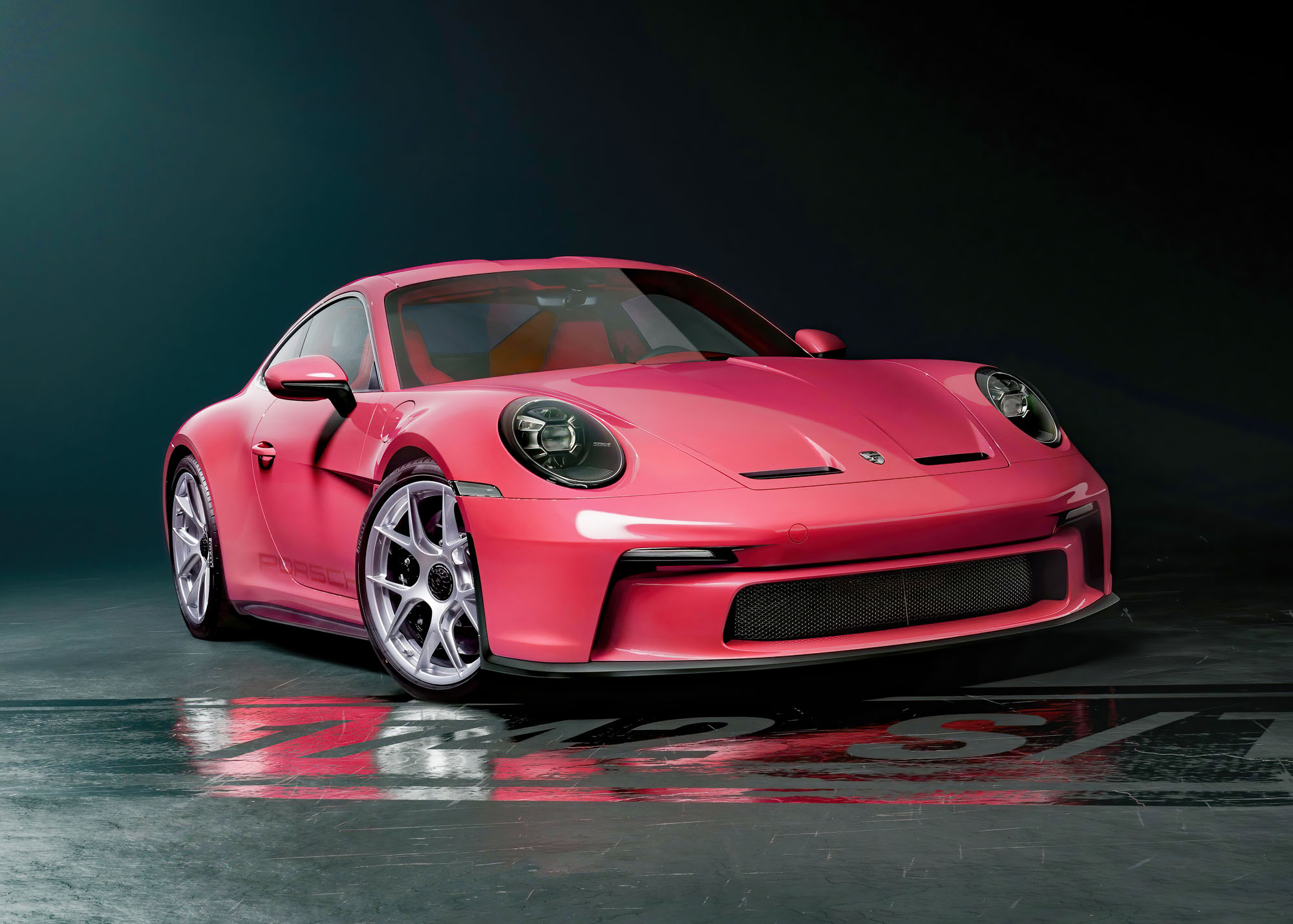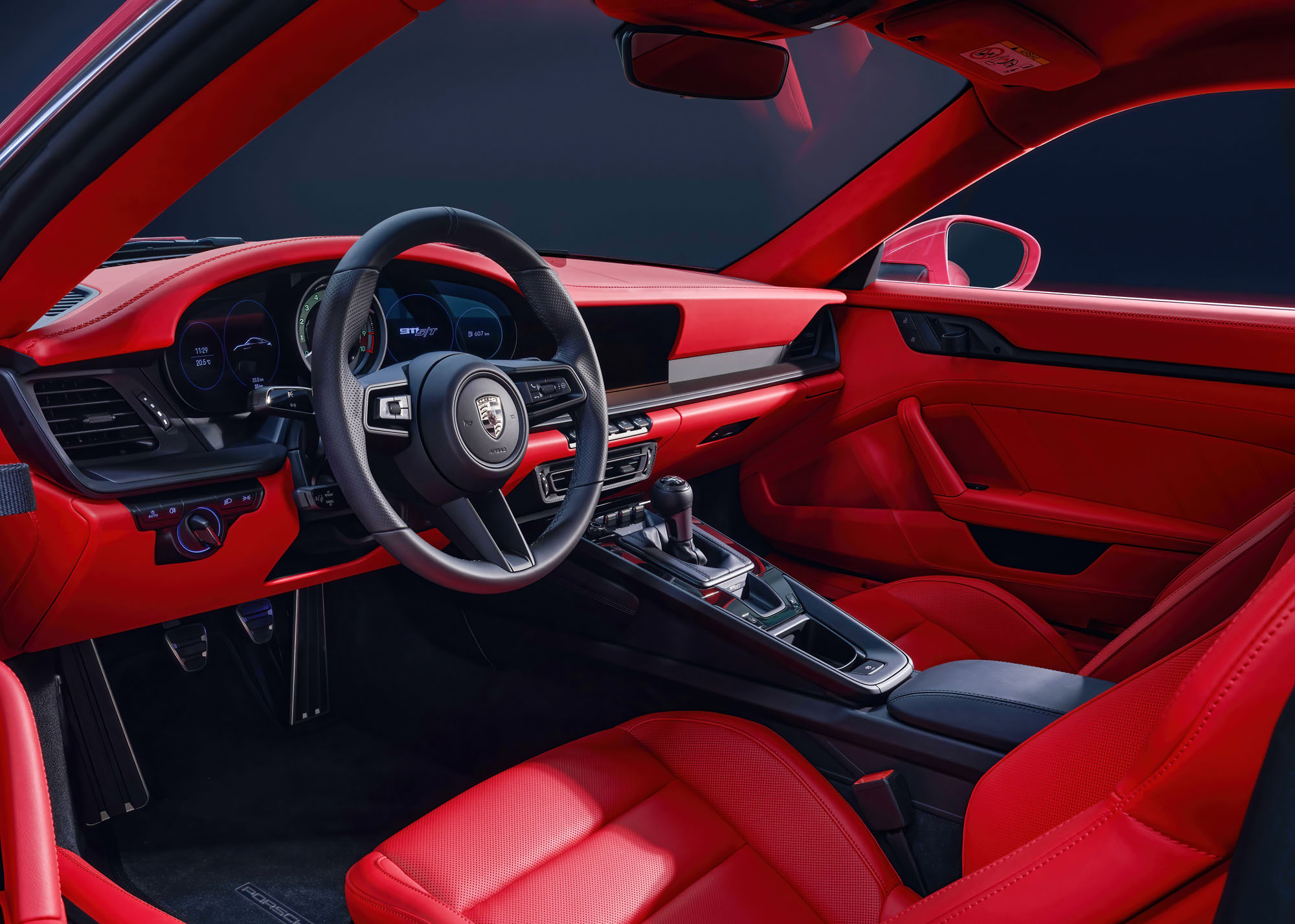 Suzan Taher’s car, on the other hand, is finished in the Paint to Sample Plus shade Rose Red. A color that first appeared under the name “Fraise” on Porsche factory models in the 1970s, most notably on the legendary Carrera RS 2.7 and the 911 Carrera RSR 3.0, which started at the International Race of Champions (IROC) in 1974. After being reviewed and implemented for this special customer vehicle, the color will also be included in the regular Paint to Sample program starting with the new 2026 model year. The Sonderwunsch specialists have extensively individualized the 911 S/T interior, and many surfaces are trimmed in Guards Red leather.