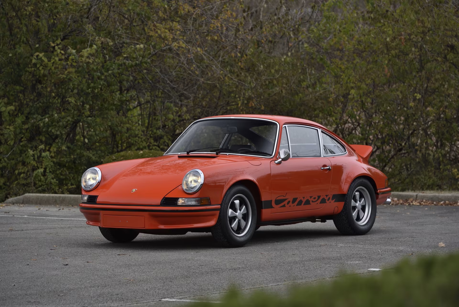 With only 15,930 kilometers (9,874 miles) on the clock, this Tangerine-colored Carrera RS 2.7 is rare and in pristine condition. Originally delivered to Italy, it has since spent time in Switzerland before finding its way to the United States. Its Type 911/83 2,687cc air-cooled flat-6 engine is mated to a Type 915 5-speed manual transmission.