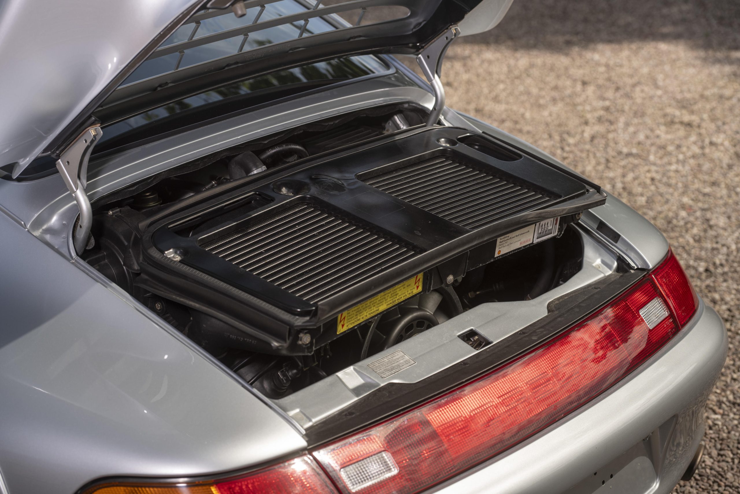 The GT2 featured upgraded brakes, suspension, and wheels, alongside a larger front air dam and rear spoiler for enhanced aerodynamics. It was significantly lighter than the Turbo, shedding 300kg by using aluminum body panels, lightweight racing seats, and minimal interior fittings. The GT2 also had widened wheel arches and a larger rear wing for improved cooling.