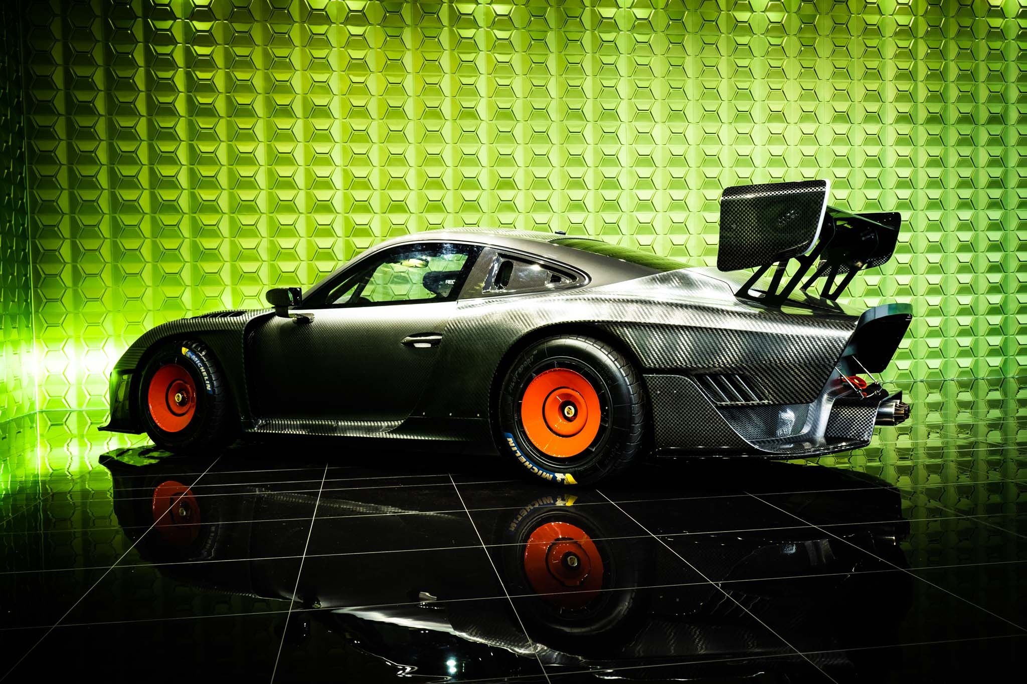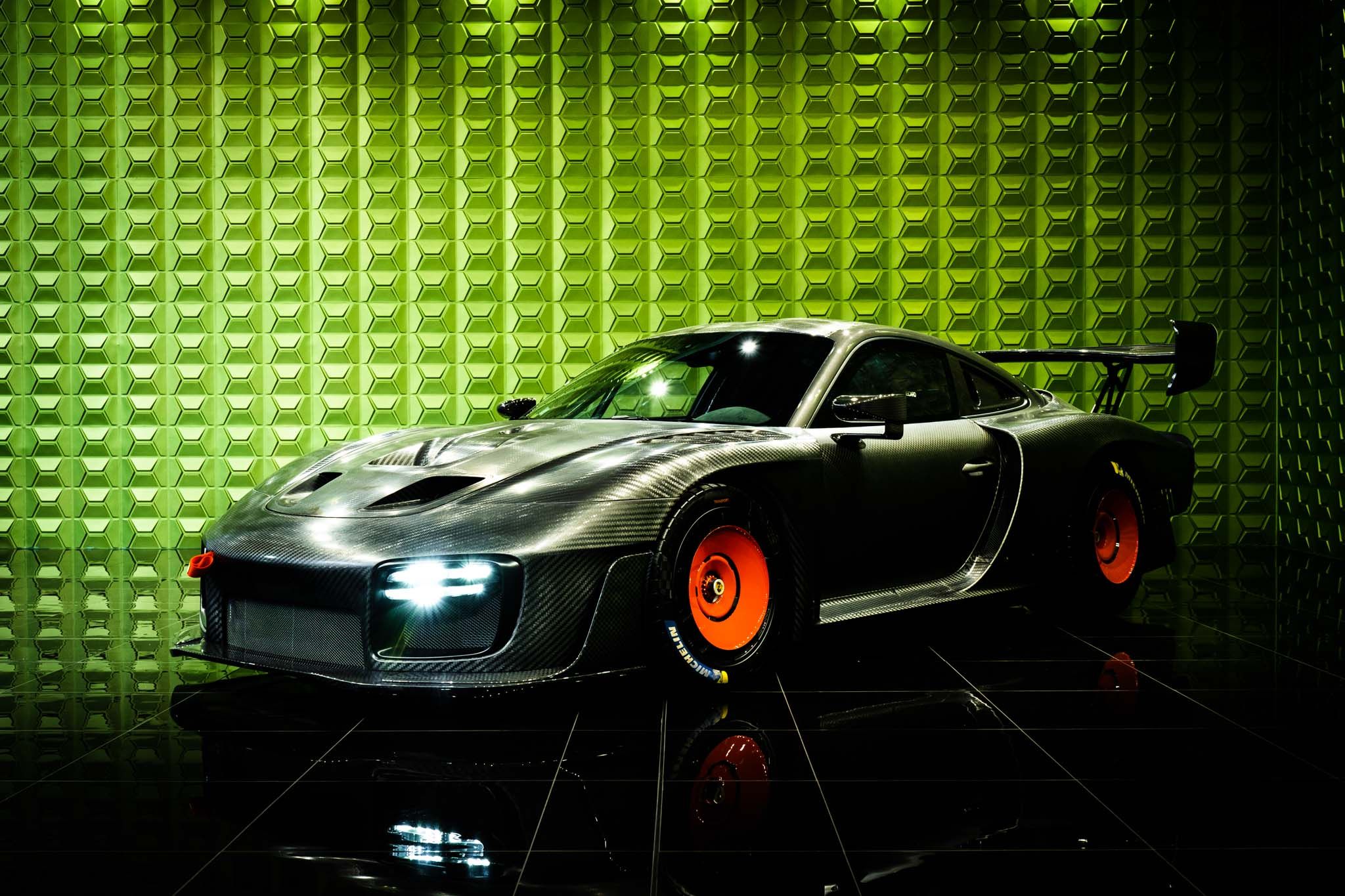 Inspired by the legendary 935 Group 5 racer, this car sports a matte carbon exterior over a black interior. It is powered by a 3.8-liter, water-cooled, twin-turbocharged six-cylinder engine delivering 700 hp, paired with a seven-speed PDK gearbox for rapid shifts.