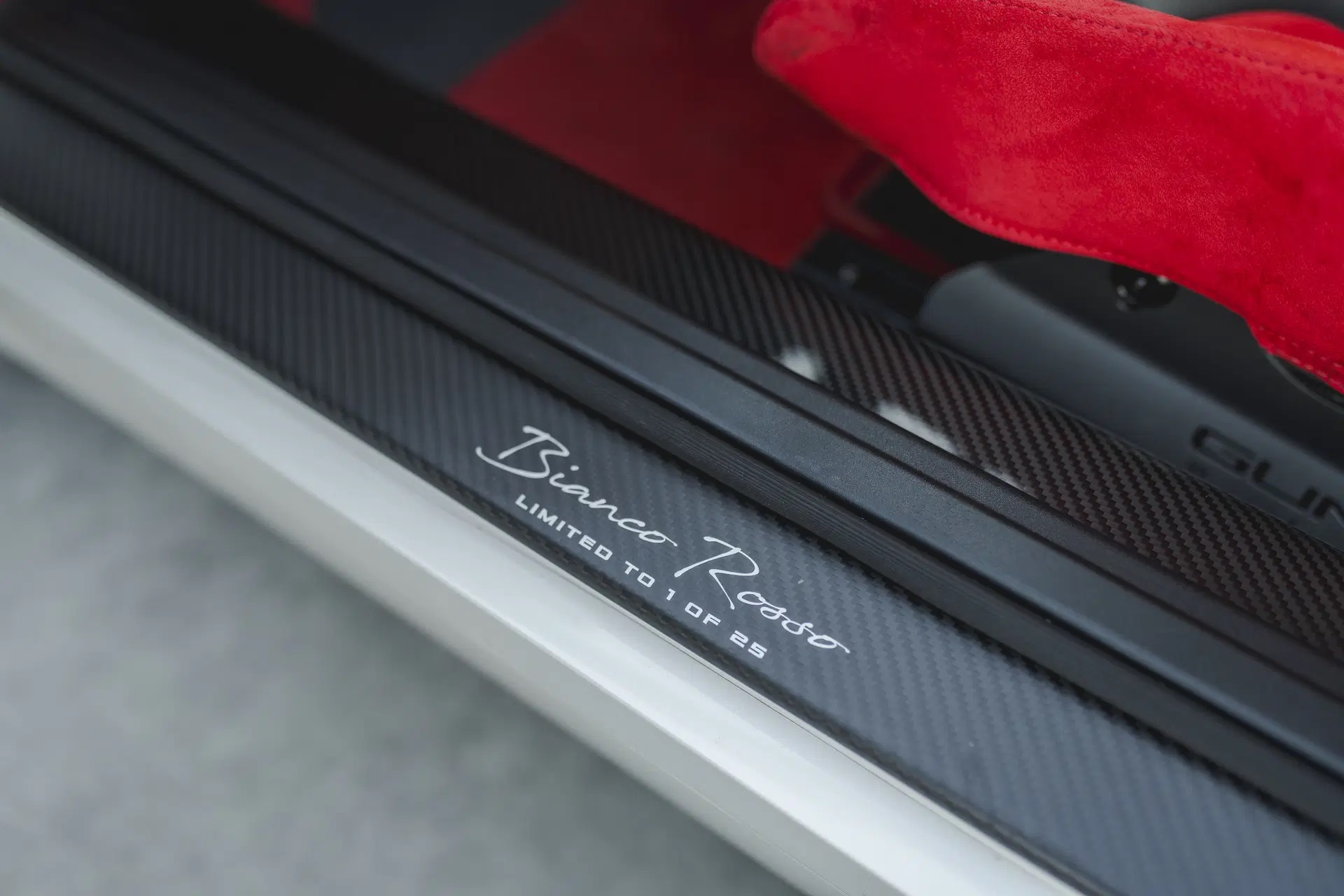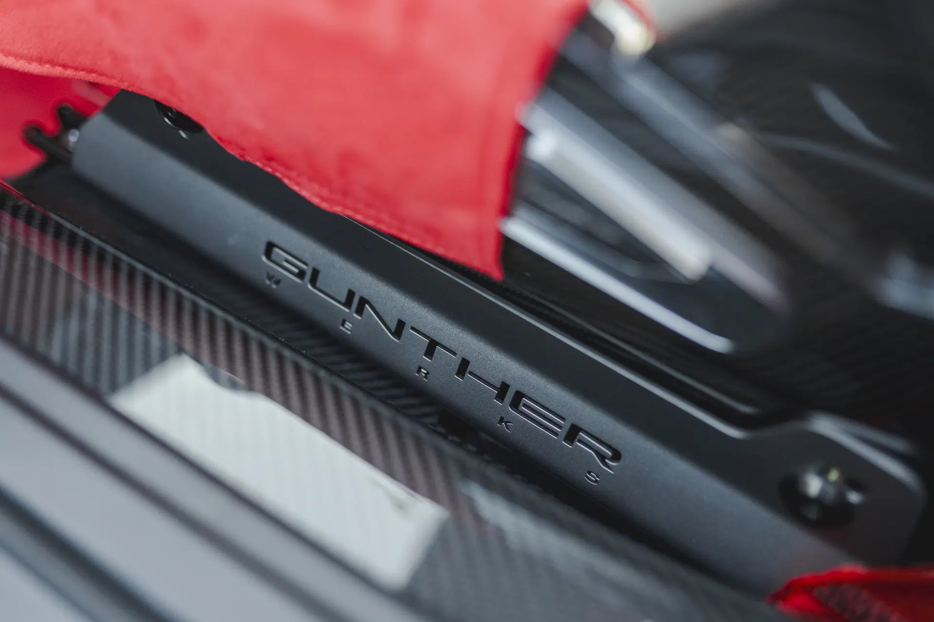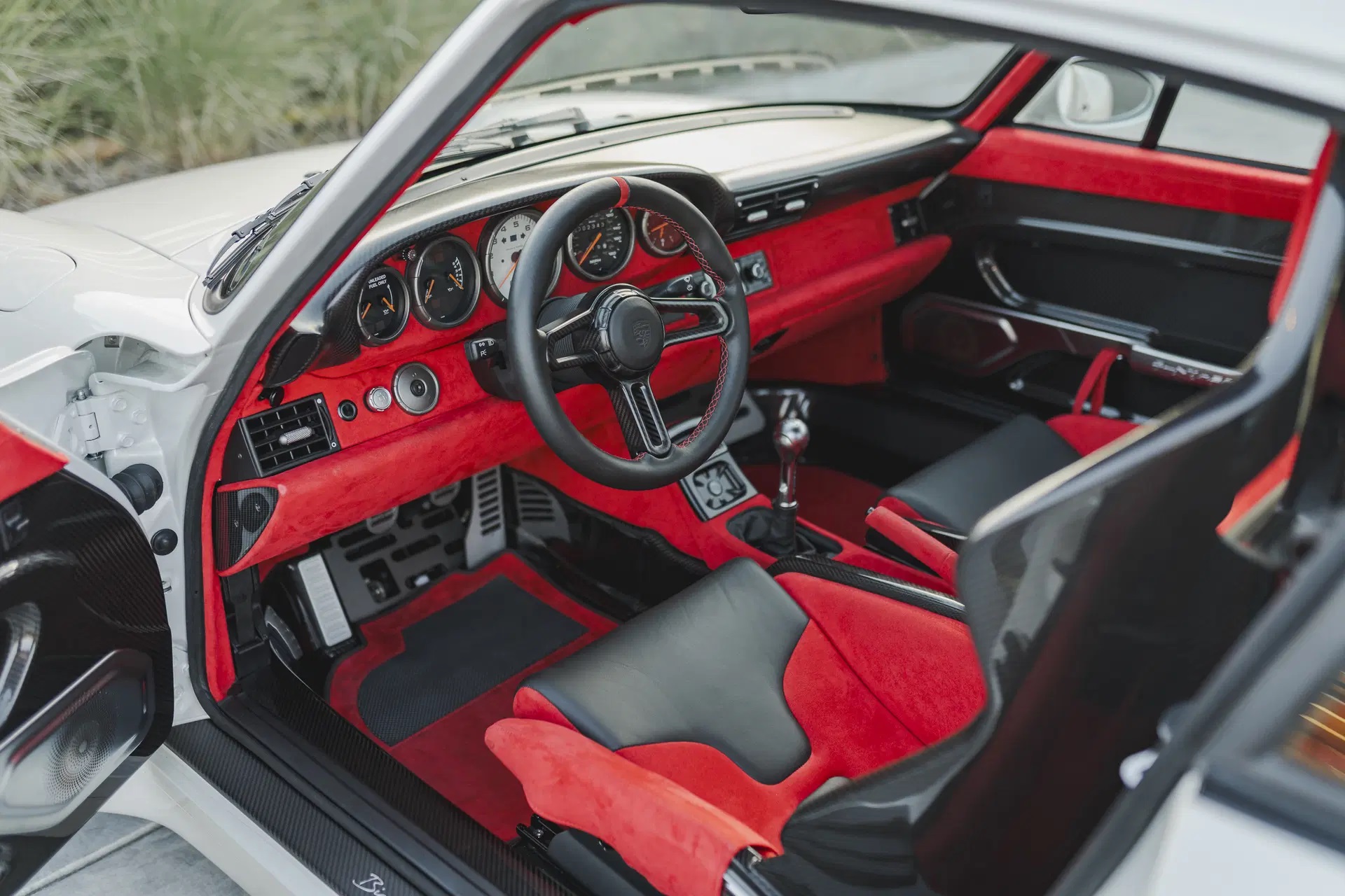 Only 25 Gunther Werks 400Rs were produced, with the “Bianco Rosso Commission” being a standout. It features a pearlescent white and red color scheme, Fuchs-inspired wheels, and Brembo brakes, paying tribute to classic 911s while maintaining a contemporary appearance.