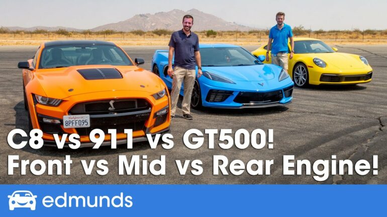 Sports Car Comparison ― Price, Performance & More The folks at Edmunds round up three of the best current sports cars and compare them. We have a 992 Porsche 911 Carrera S vs. Shelby GT500 vs. C8 Chevy Corvette.