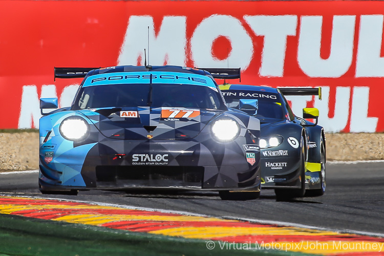 As the race approached the halfway mark, the #77 RSR slipped further back to fifth place while the #56 Team Project 1 RSR was on a march, and lay in sixth place at this point. As the race moved into the fourth hour, the first four places in GTE Am were filled by two Aston Martins and two Ferraris. The #88 Dempsey-Proton RSR had slipped to seventh place with a faulty fuel pump, and the #86 Gulf Porsche was one place further back.