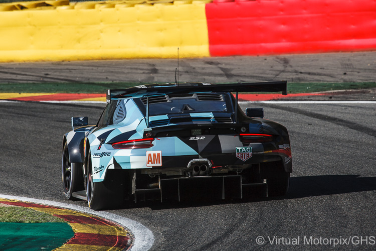 WEC Spa-Francorchamps 6 Hours, 5 May 2018: The #86 Gulf Racing LMGTE Am Porsche 911 RSR driven by: Michael Wainwright, Ben Barker and Alexander Davison. The car is sporting a new front section as a result of the damage caused by the opening lap incident