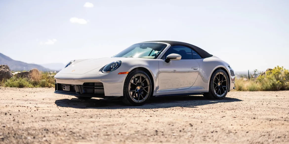 This 2025 Porsche 911 Carrera Cabriolet is finished in Chalk over black leather and was optioned with the Premium, Sport Chrono, and SportDesign packages. Power comes from a twin-turbocharged 3.0L flat-six mated to an eight-speed PDK dual-clutch automatic transaxle, and it is further equipped with a black soft top, a...